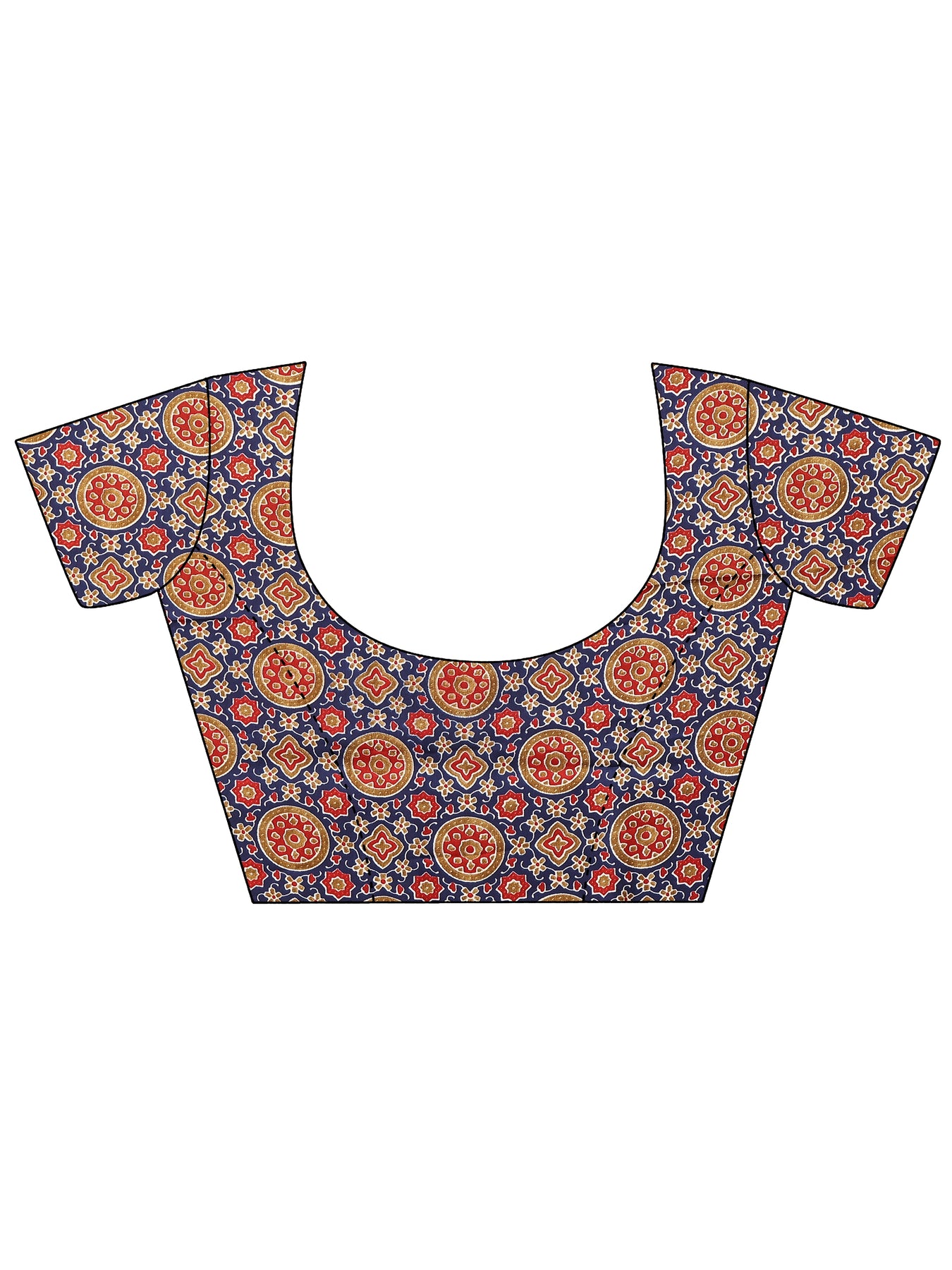 Our Blue Printed Satin Saree Features Captivating Floral. Complemented With An Unstitched Blouse Piece. This Charming Saree Is Perfect For Festive Occasions.
