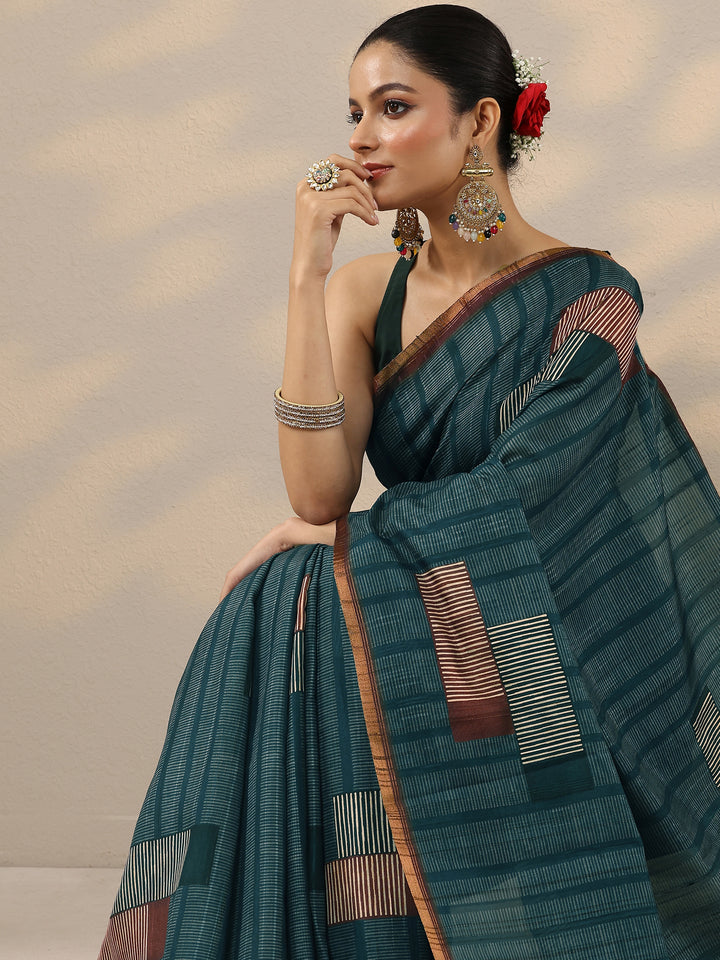 Blue Printed Silk Blend Saree With Unstitched Blouse Piece