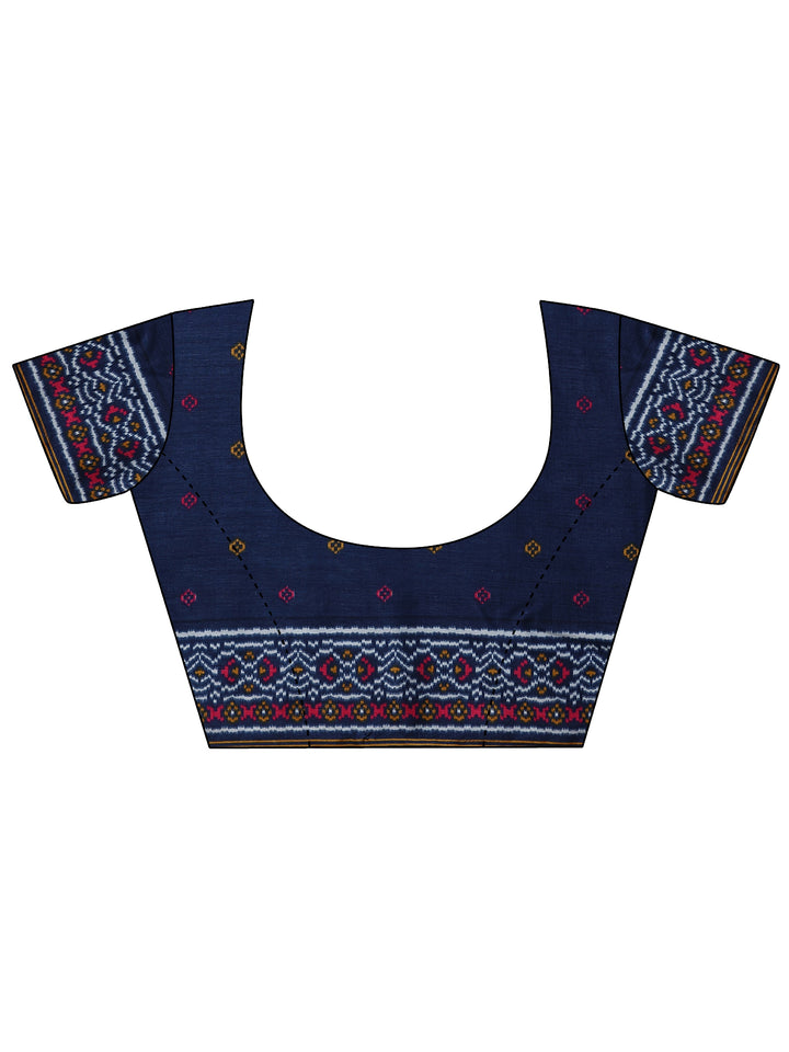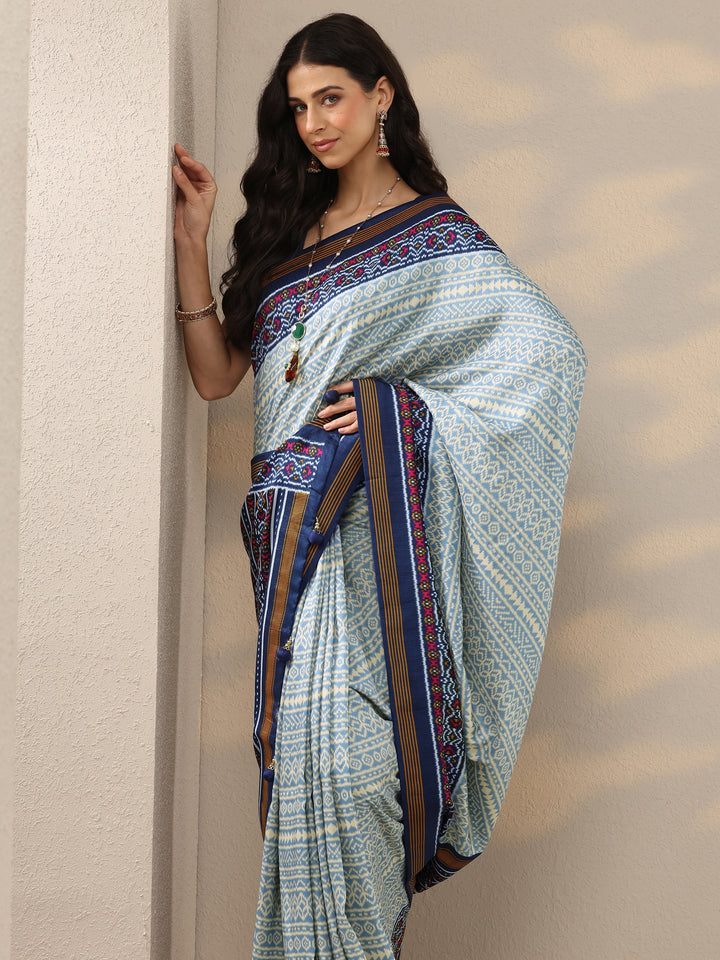 Blue Printed Silk Blend Saree With Unstitched Blouse Piece