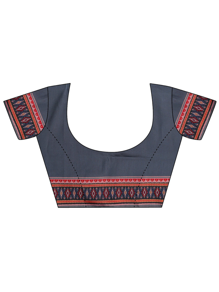 Our blue printed silk saree features captivating geometric print. Complemented with an unstitched Blouse Piece. This charming saree is perfect for festive occasions