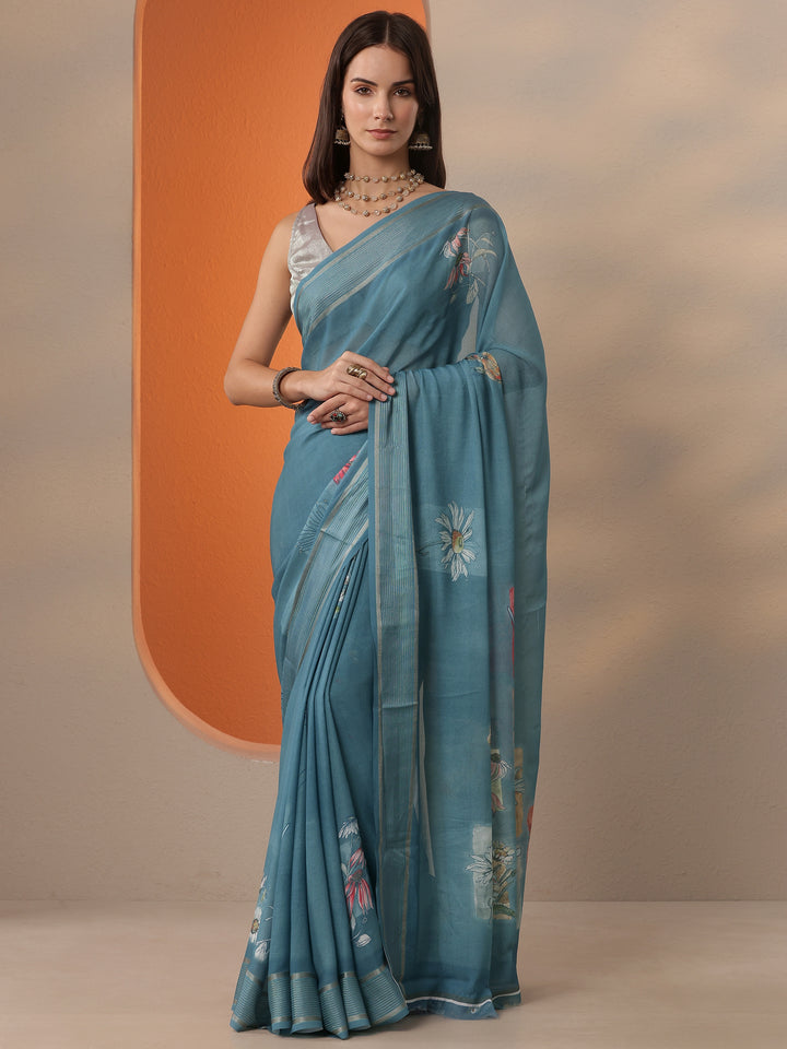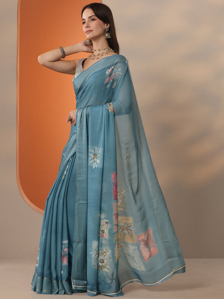 Our Blue Solid Georgette Saree. Complemented With An Unstitched Blouse Piece. This Charming Saree Is Perfect For Festive Occasions.