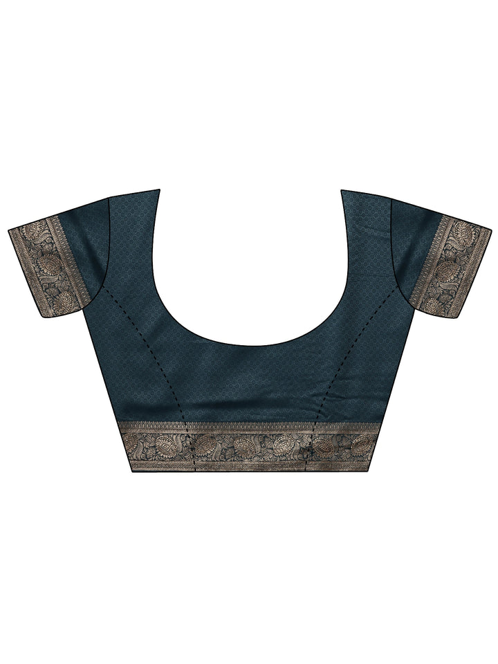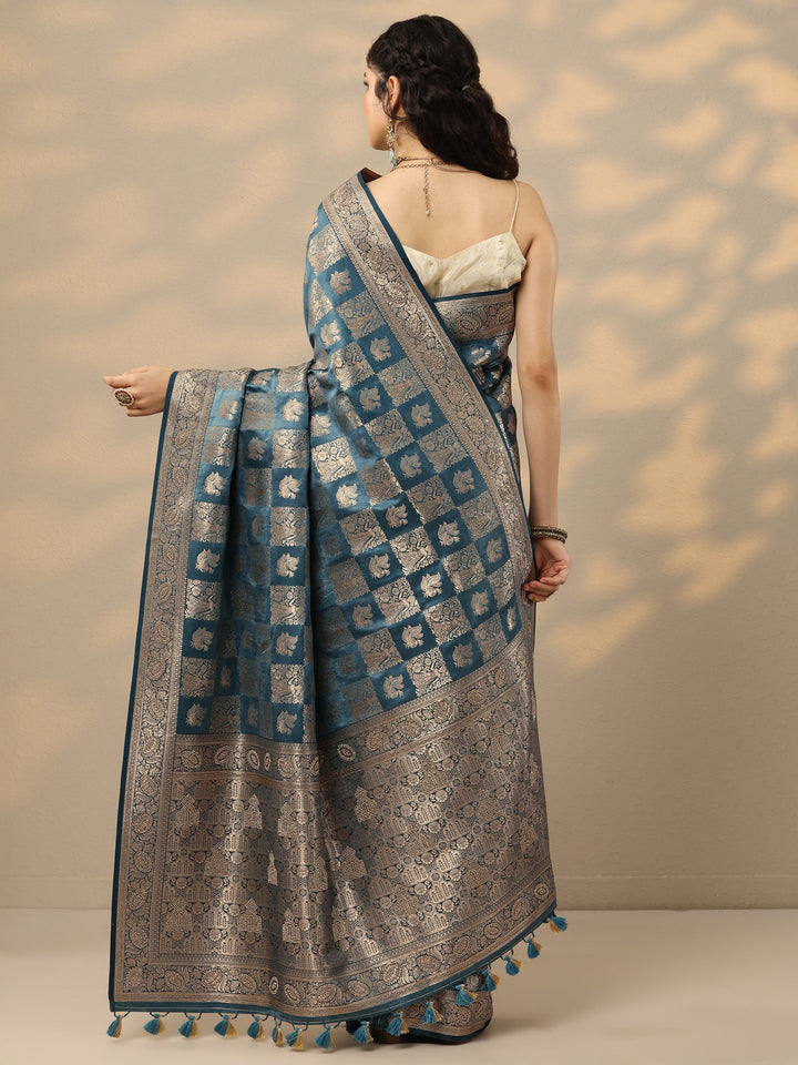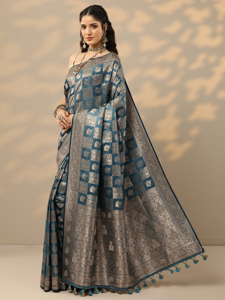 Blue Woven Design Banarasi Silk Blend Saree With Unstitched Blouse Pie