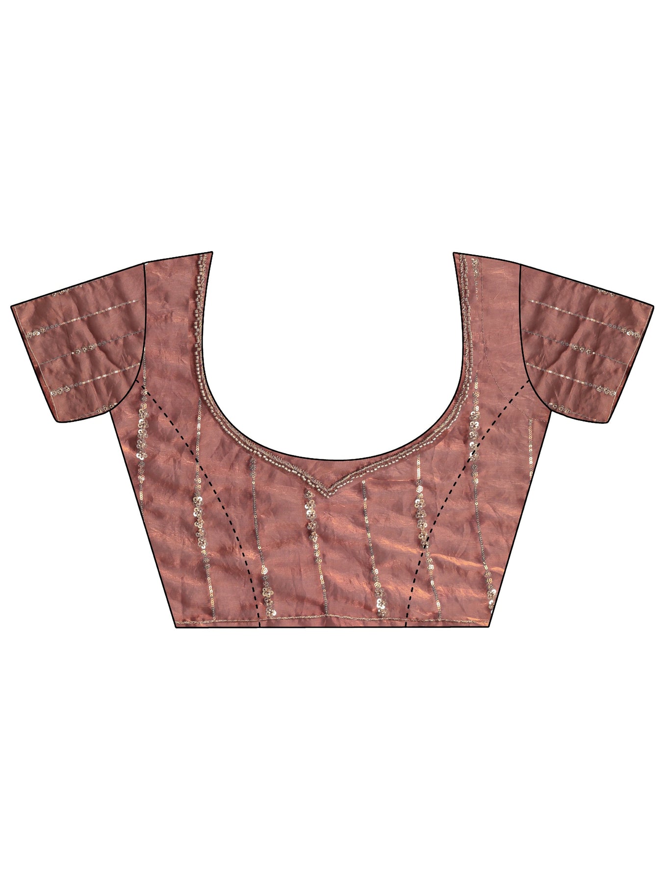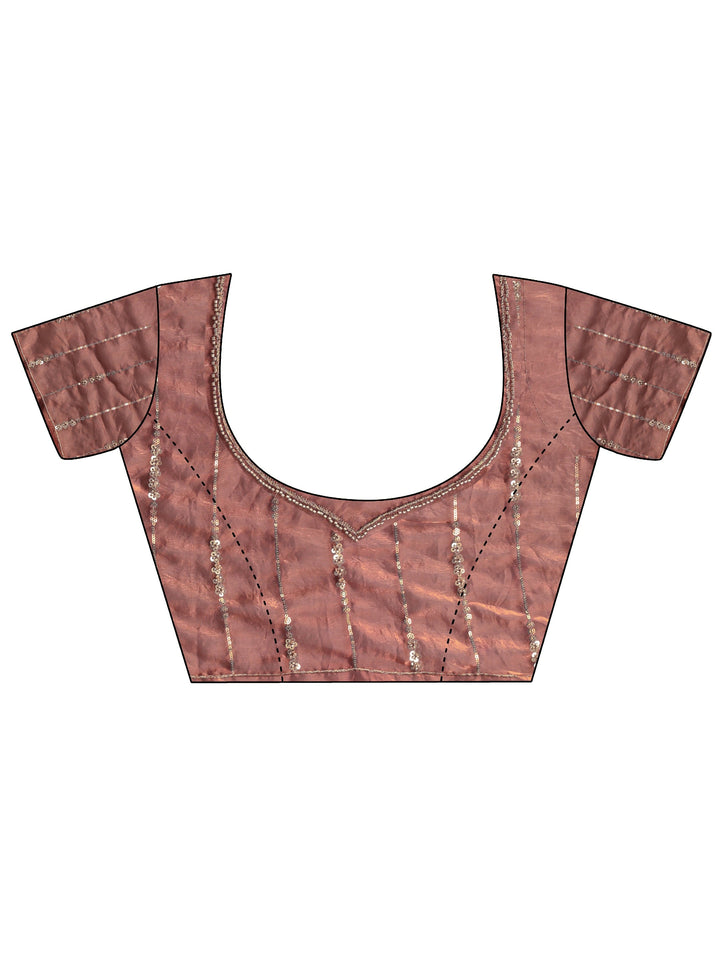 Brown Embellished Tissue Saree With Unstitched Blouse Piece