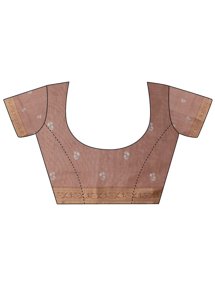 Brown Printed Silk Blend Sarees With Unstitched Blouse Piece