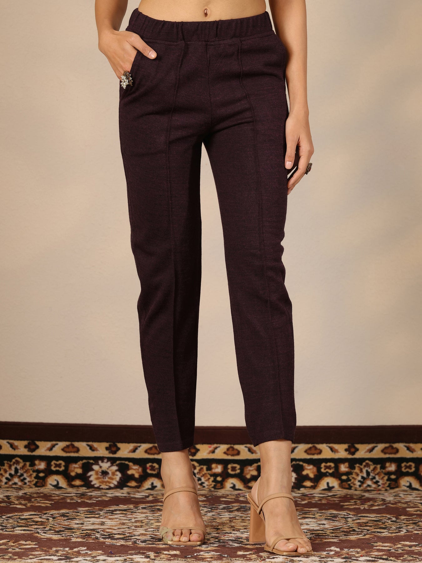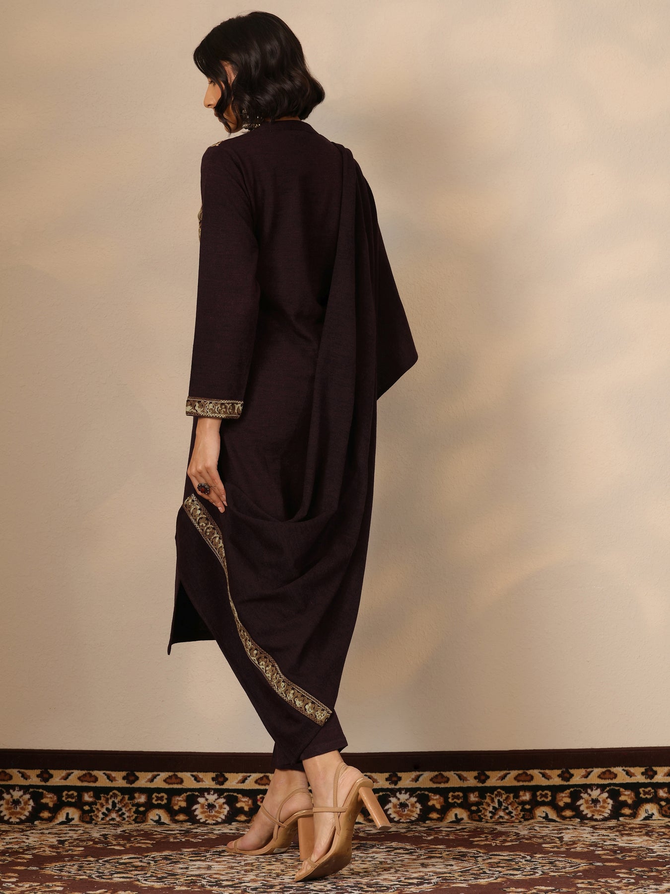 Burgundy Embroidered Wool Straight Suit Set With Dupatta