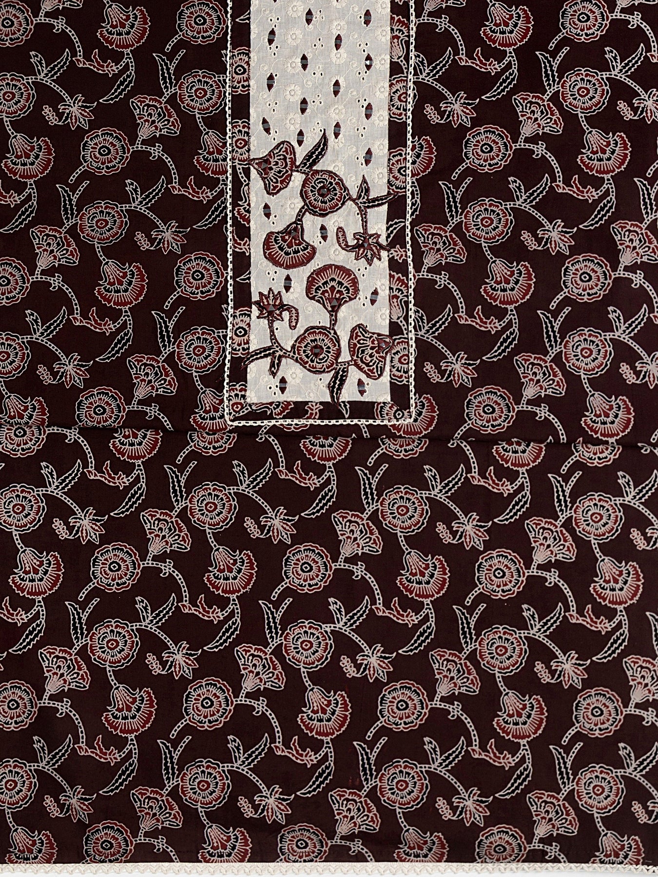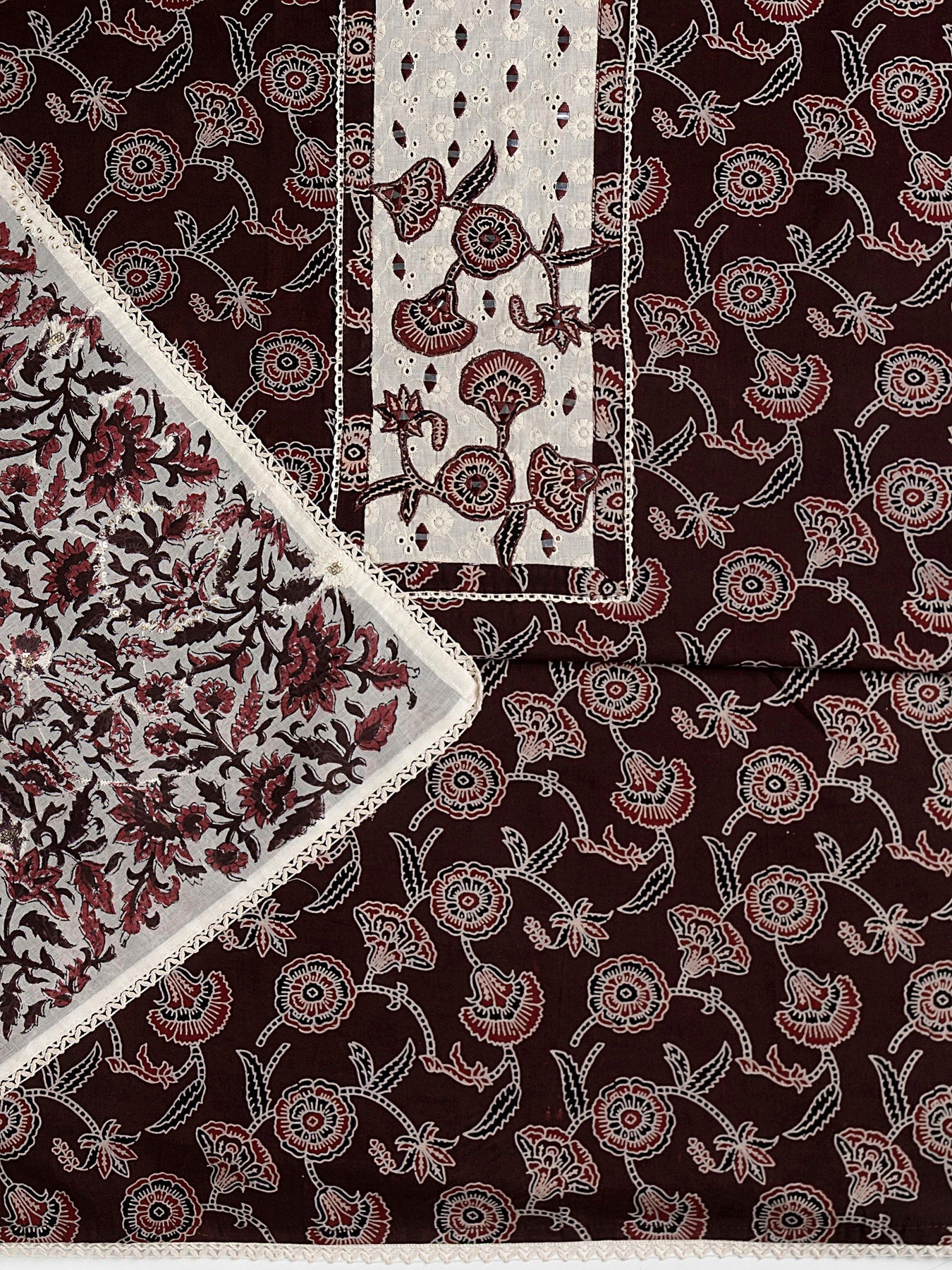Burgundy Floral Printed Cotton Dress Material With Dupatta