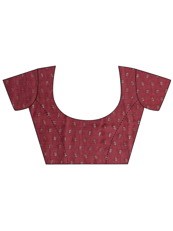Burgundy Floral Printed Silk Blend Saree With Unstitched Blouse Piece