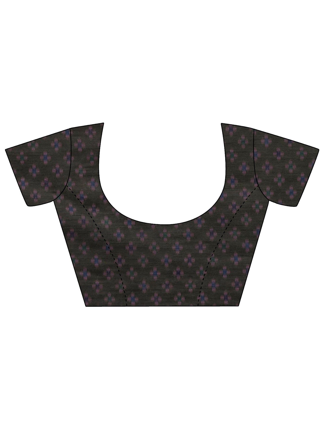 Burgundy Ikat Printed Silk Saree With Unstitched Blouse Piece