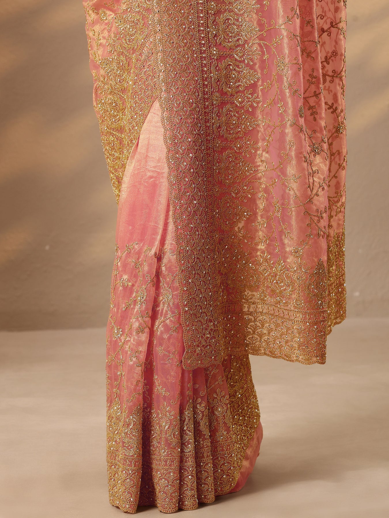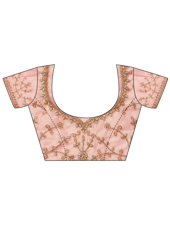 Coral Embroidered Nylon Saree With Unstitched Blouse Piece