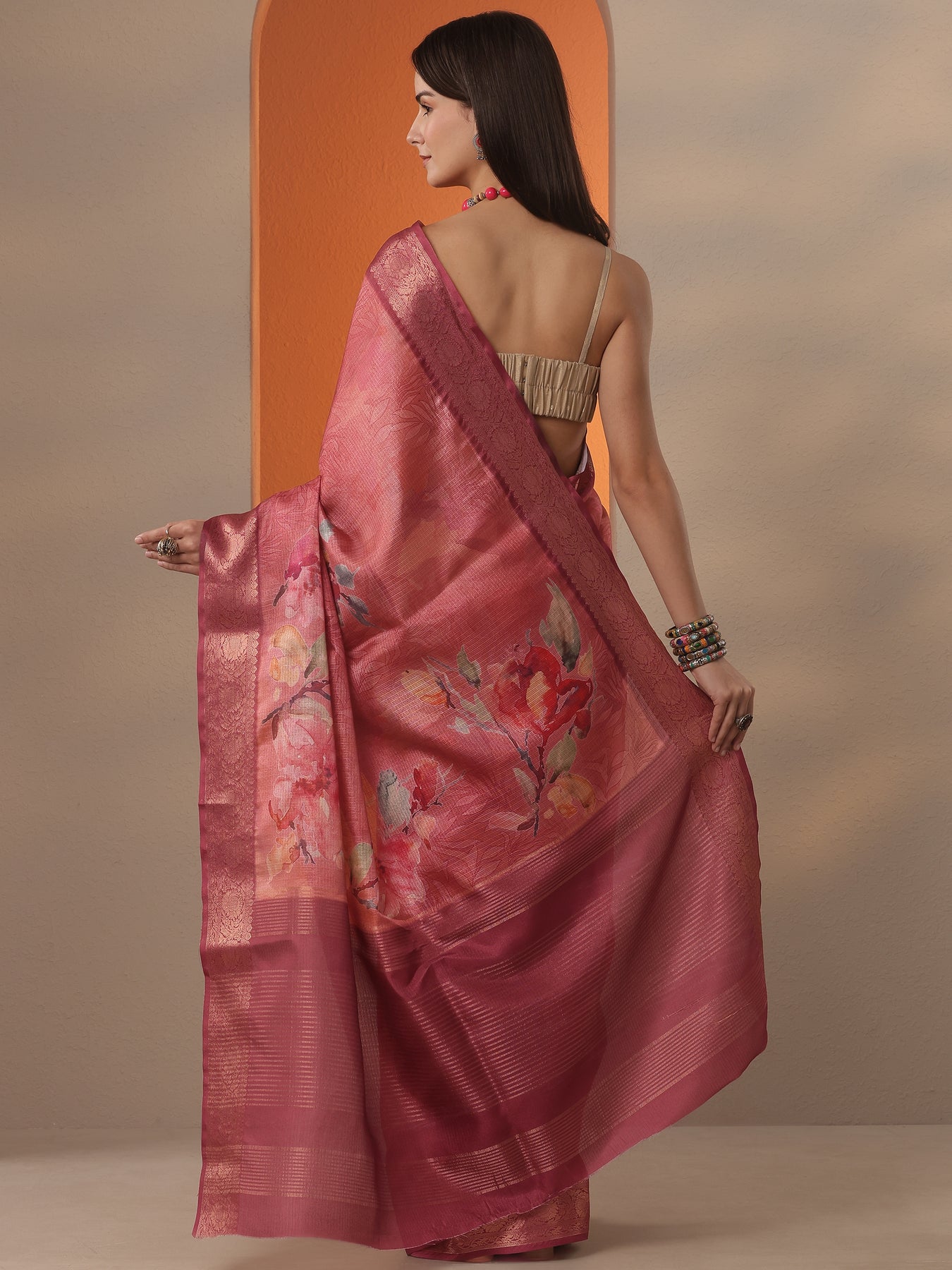 Coral Printed Kota Saree With Unstitched Blouse Piece