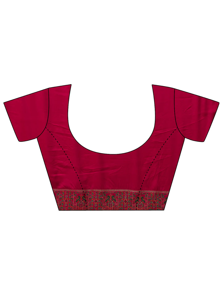 Cream Ethnic Motifs Embroidered Silk Blend Saree With Unstitched Blous