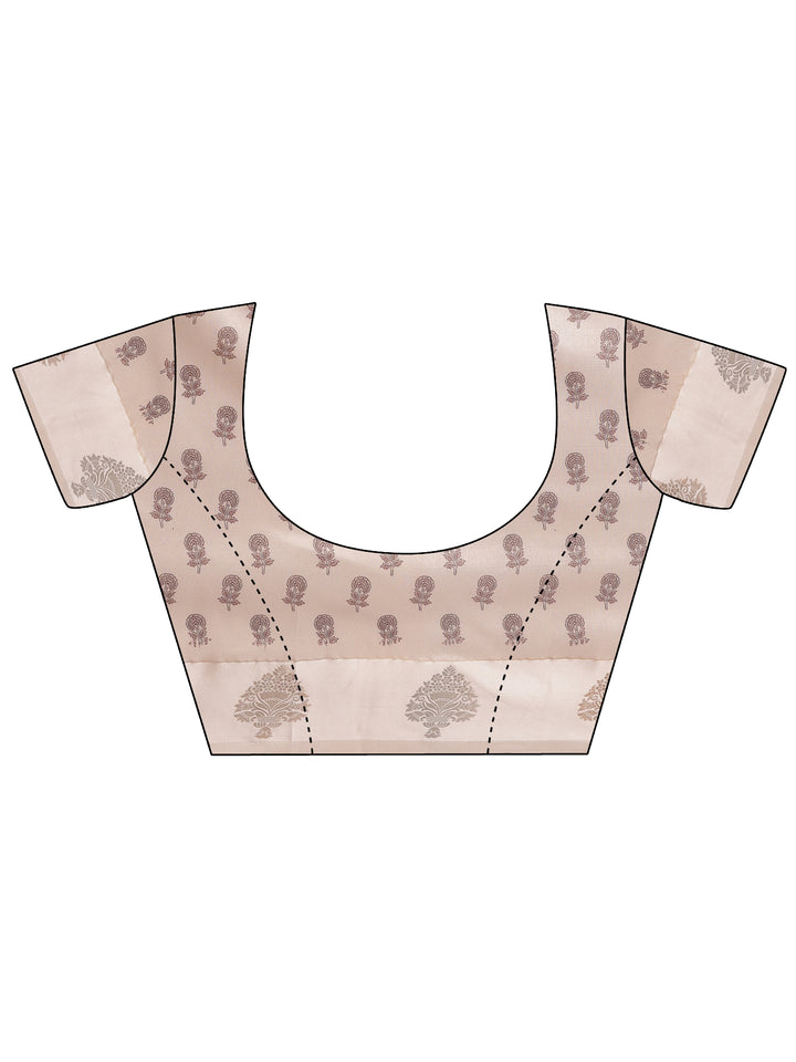 Cream Printed Silk Blend Saree With Unstitched Blouse Piece