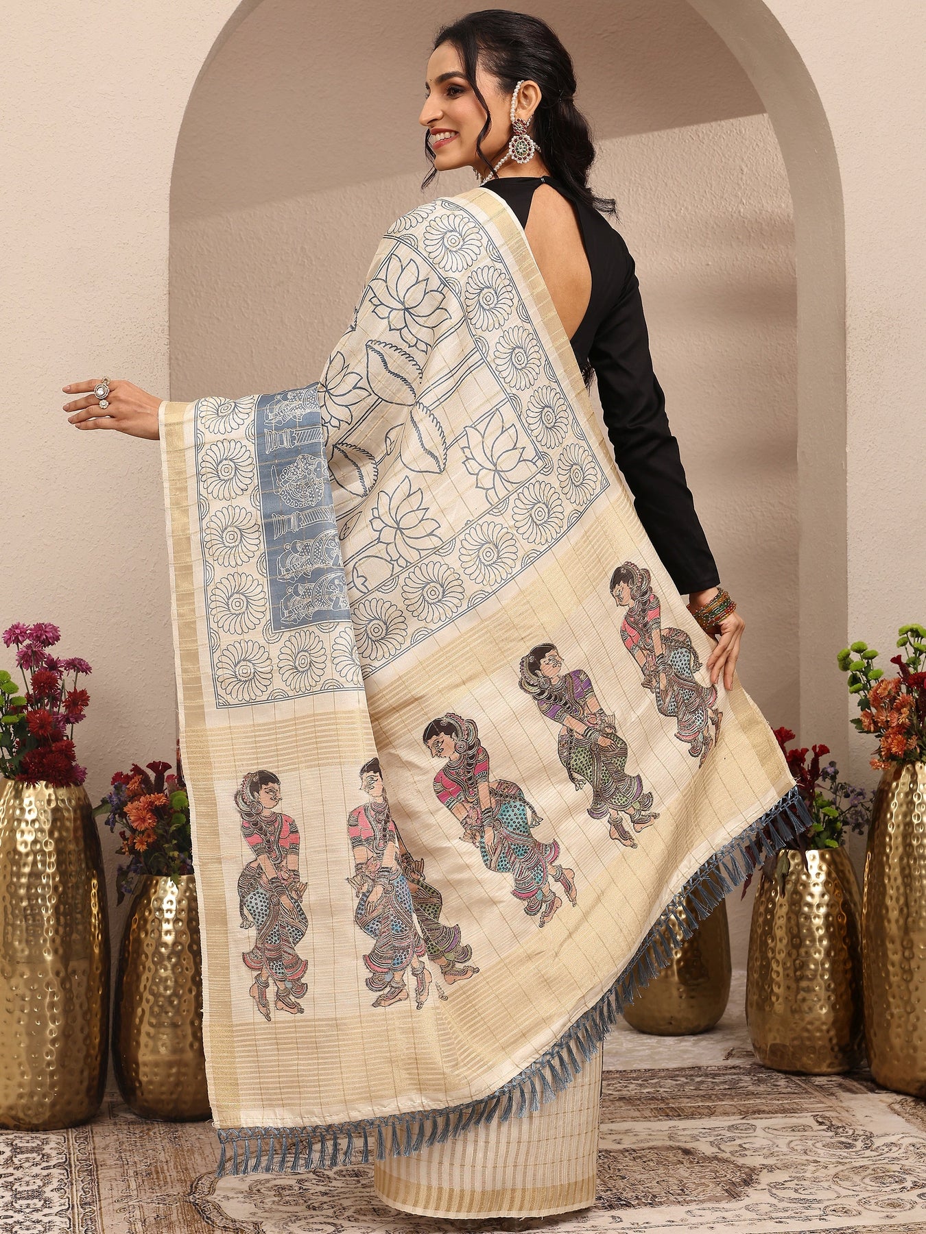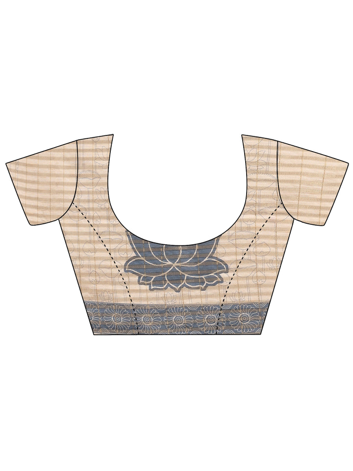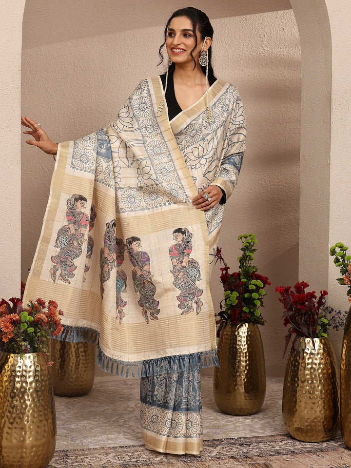 Cream Tribal Printed Silk Blend Saree With Unstitched Blouse Piece