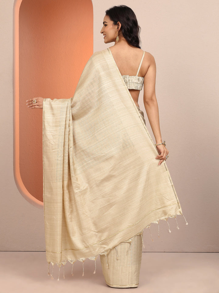 Gold Embellished Silk Blend Saree With Unstitched Blouse Piece