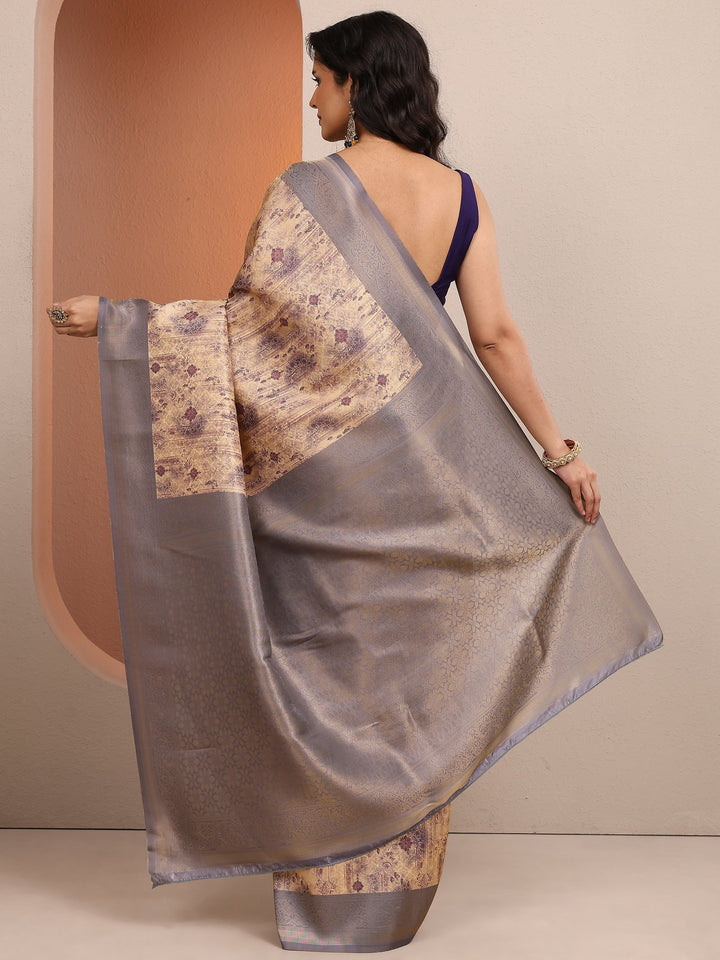 Gold Printed Silk Blend Saree With Unstitched Blouse Piece