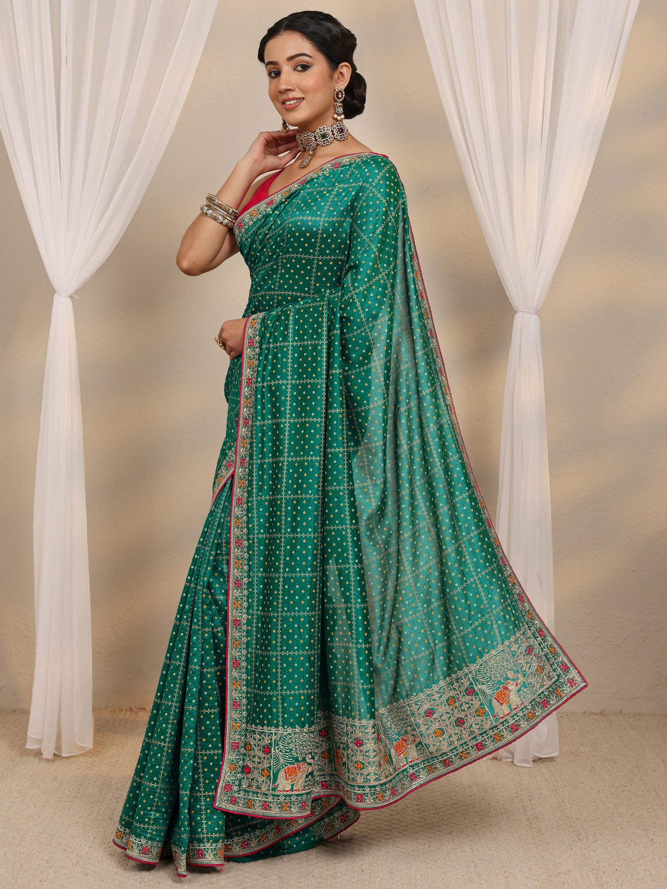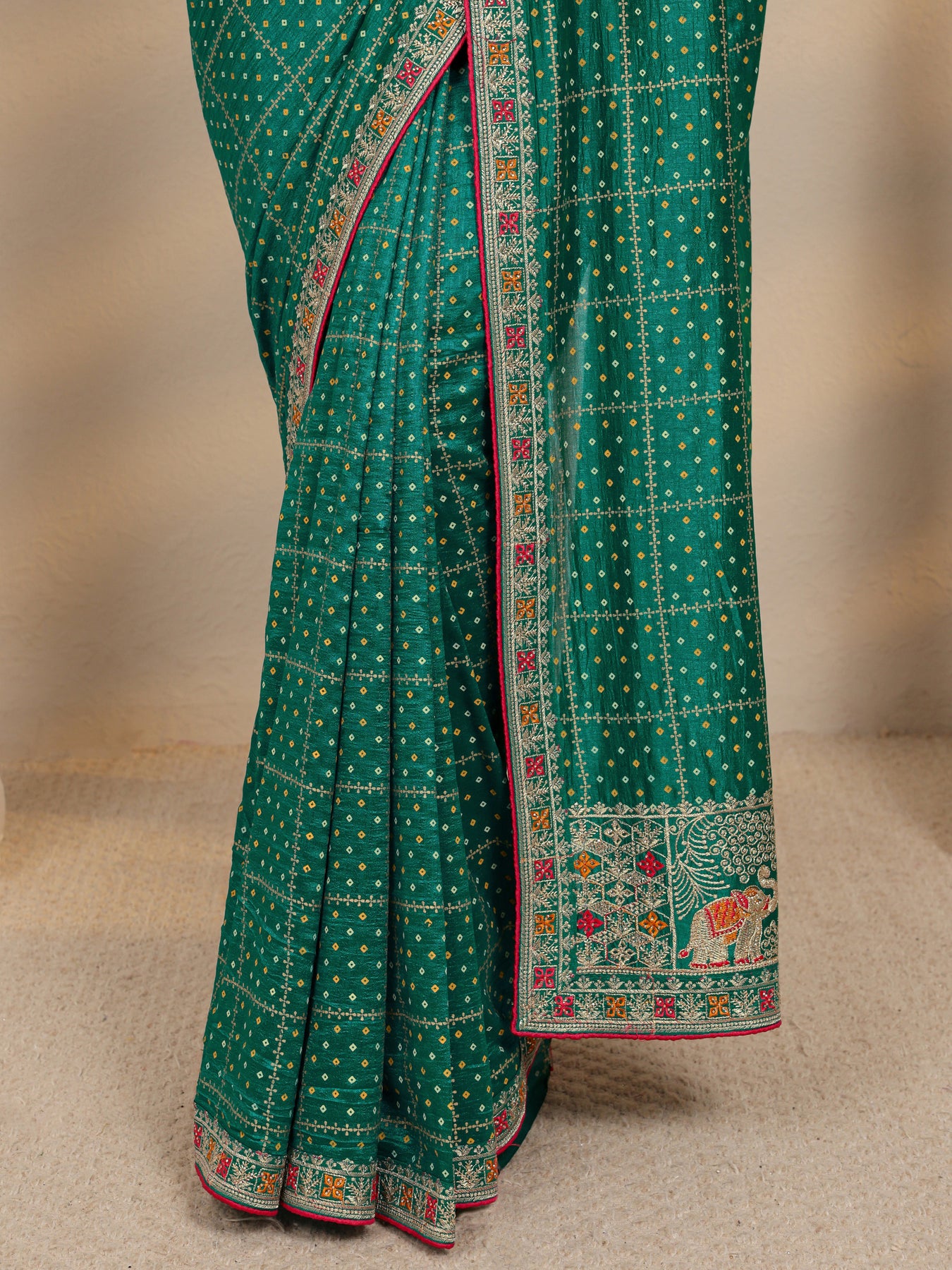 Green Bandhani Printed Silk Blend Saree With Unstitched Blouse Piece