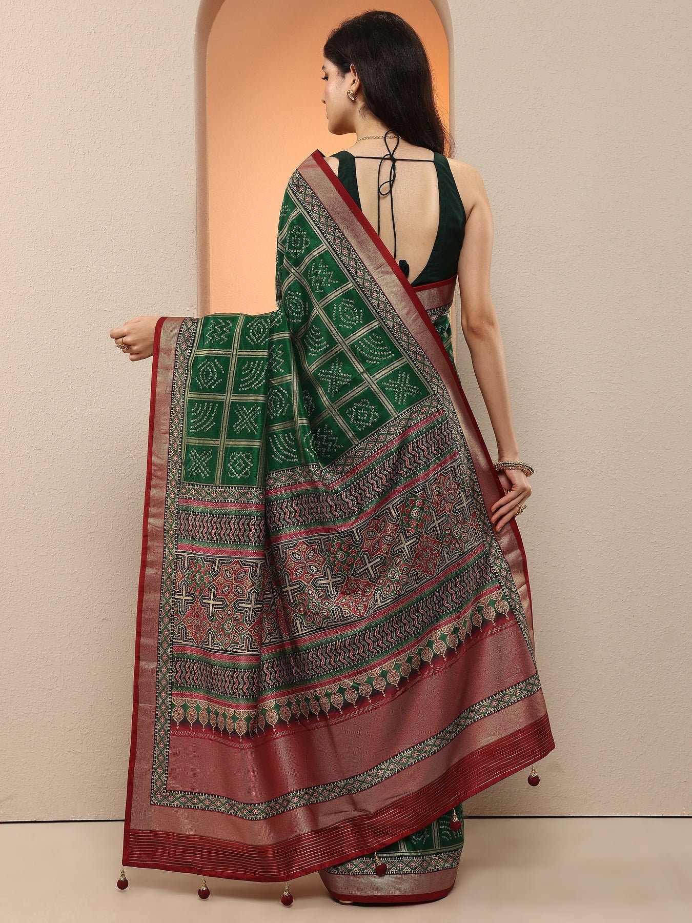 "product_collections": "Above 1000,Bandhani,Bandhani Sarees,Chanderi Silk Sarees,Diwali Sarees,Durga Puja Sarees,Engagement Sarees,Ethnic Wear for Women,Fancy Sarees,Green Sarees,indian sarees,Karwa Chauth Saree,New Arrivals,Sarees for Women,Silk Printed Sarees,Silk Sarees,Silken Treasures,Soft Silk Sarees,Swadeshi,Traditional Sarees"