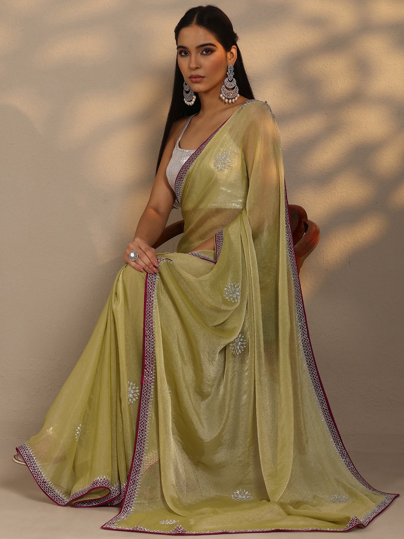 Green Embellished Organza Saree With Unstitched Blouse Piece