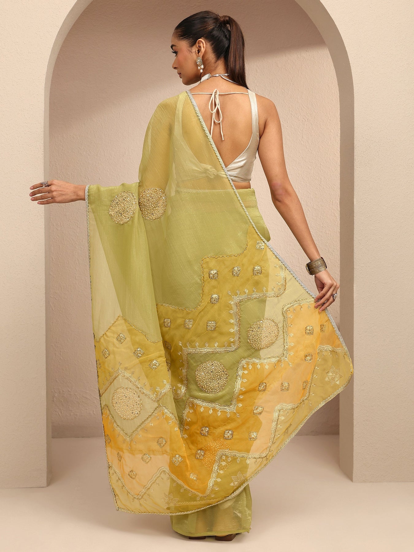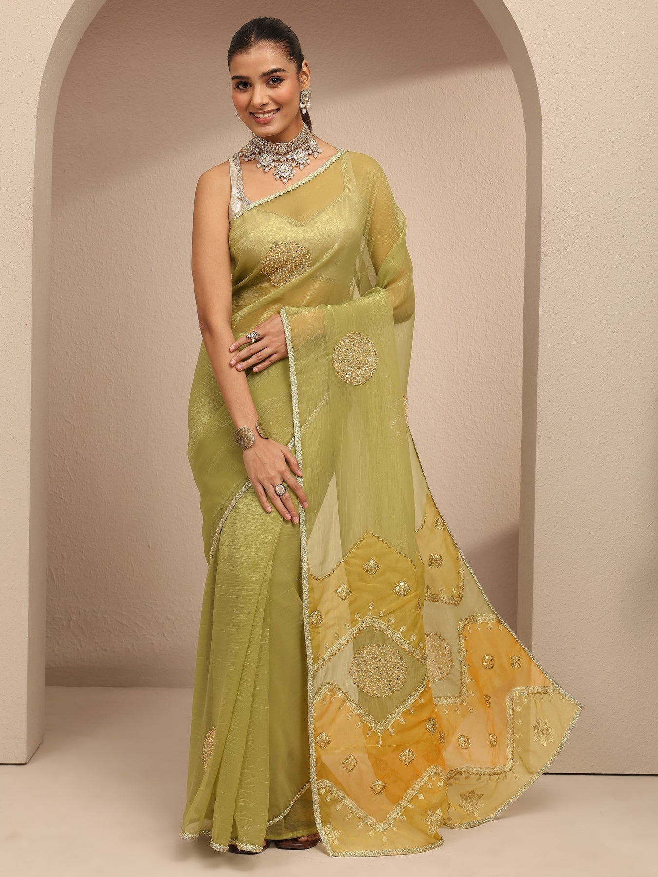 Green Embellished Silk Blend Saree With Unstitched Blouse Piece