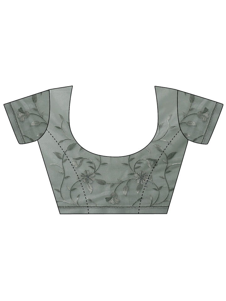 Our Green Embroidered Nylon Saree. Complemented With An Unstitched Blouse Piece. This Charming Saree Is Perfect For Festive Occasions.