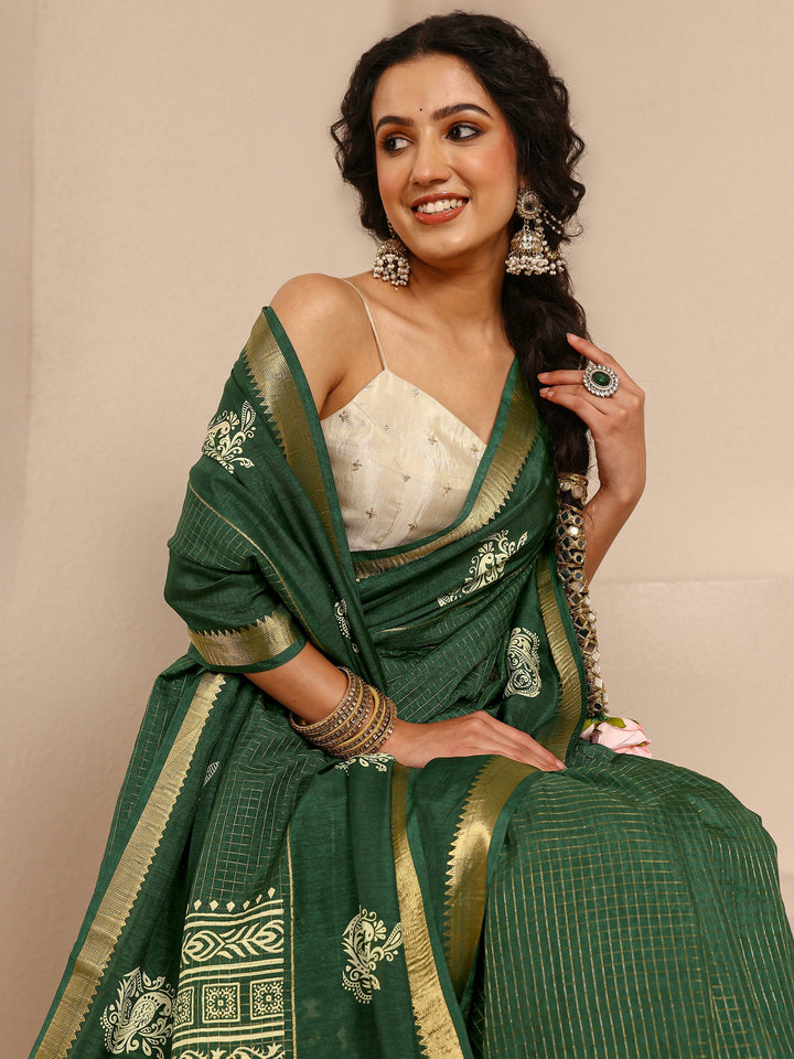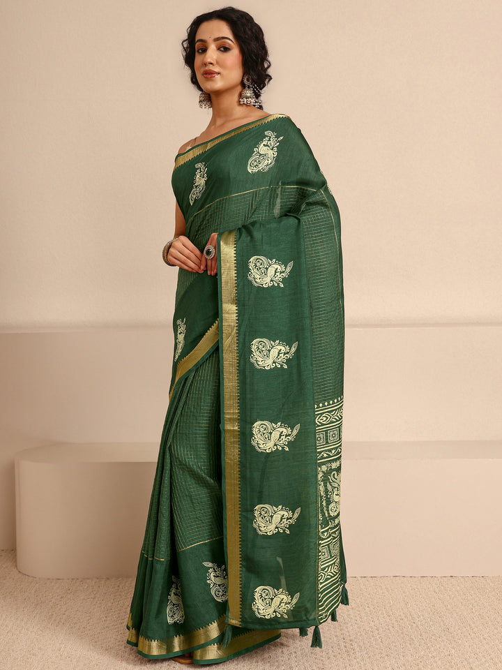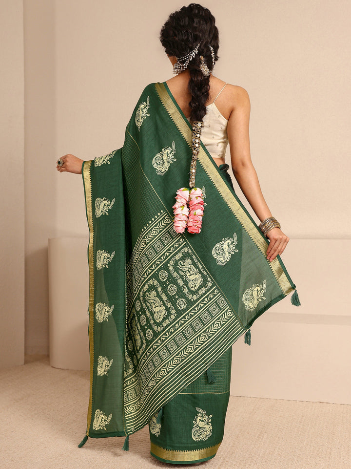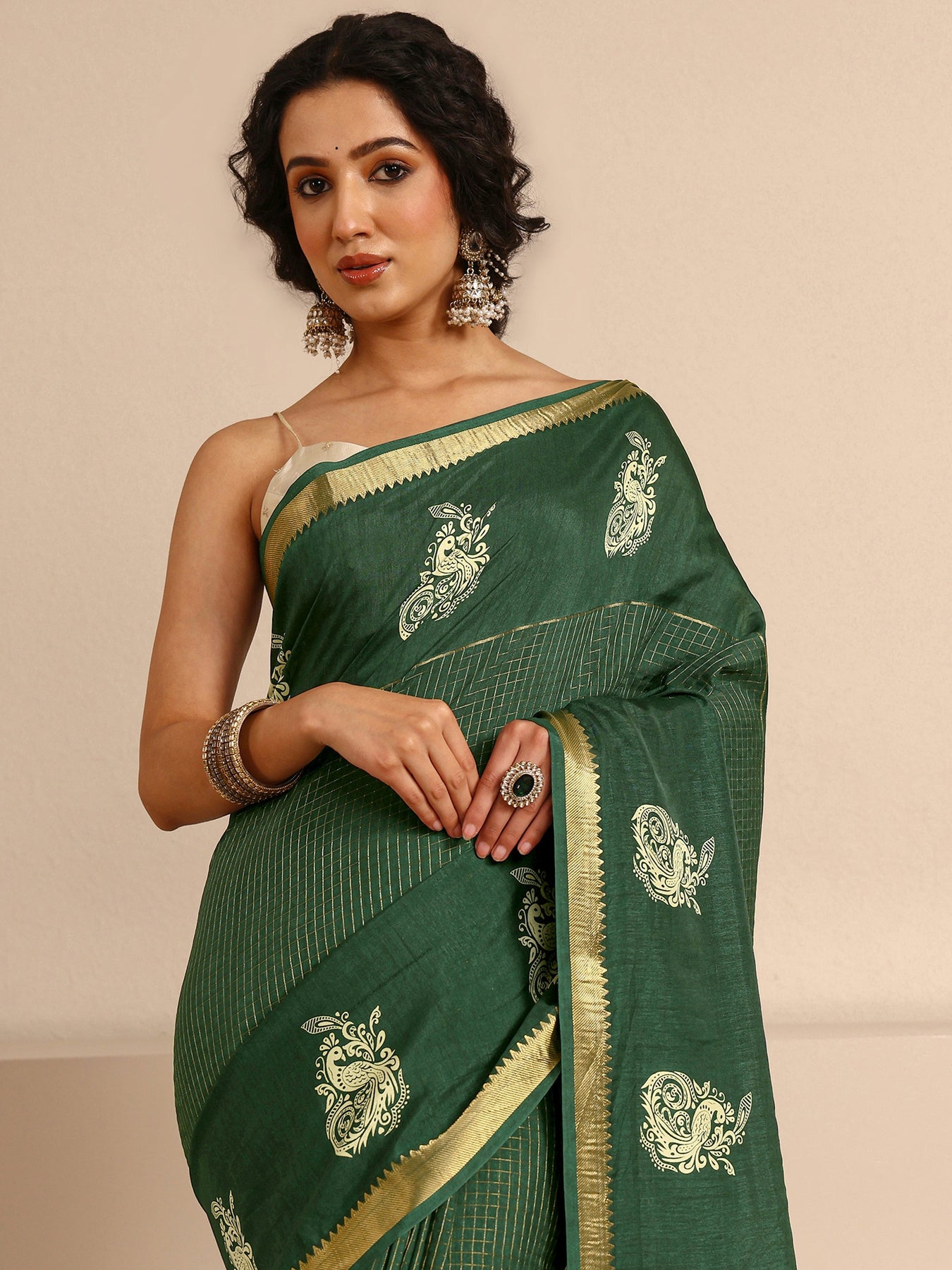 Green Ethnic Motifs Print Silk Blend Saree With Unstitched Blouse Piece