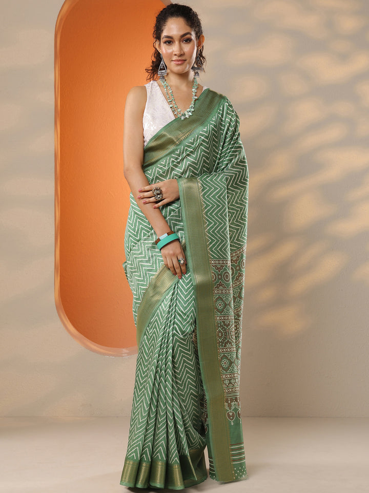 Green Leheriya Printed Silk Blend Saree With Unstitched Blouse Piece