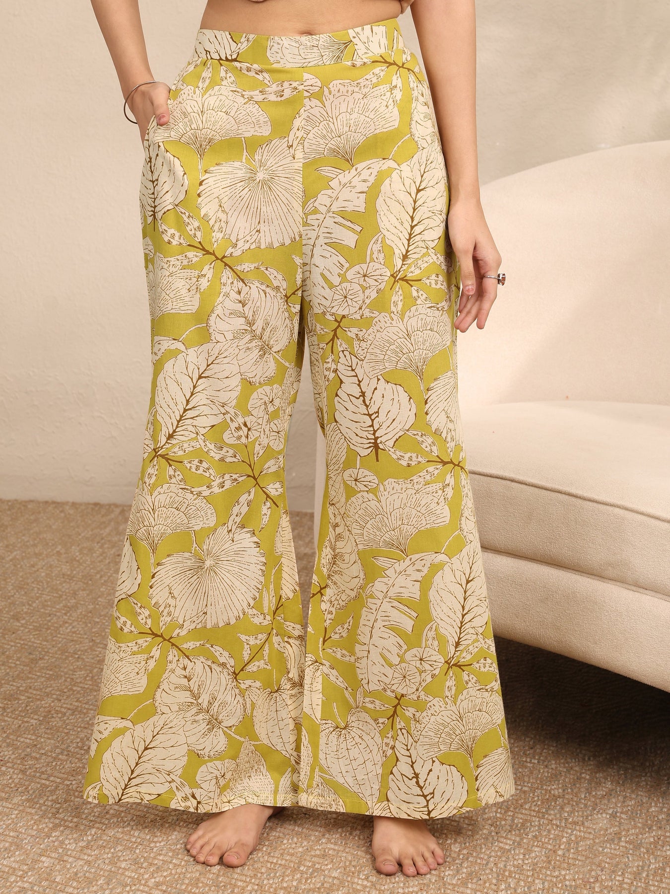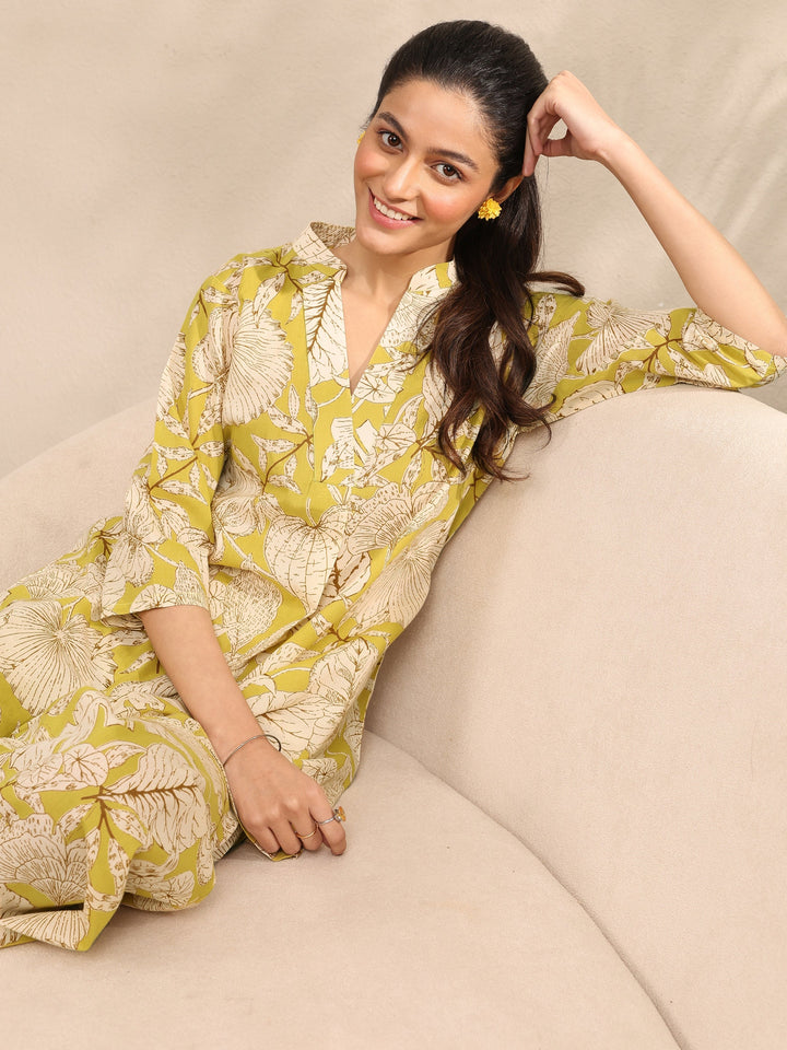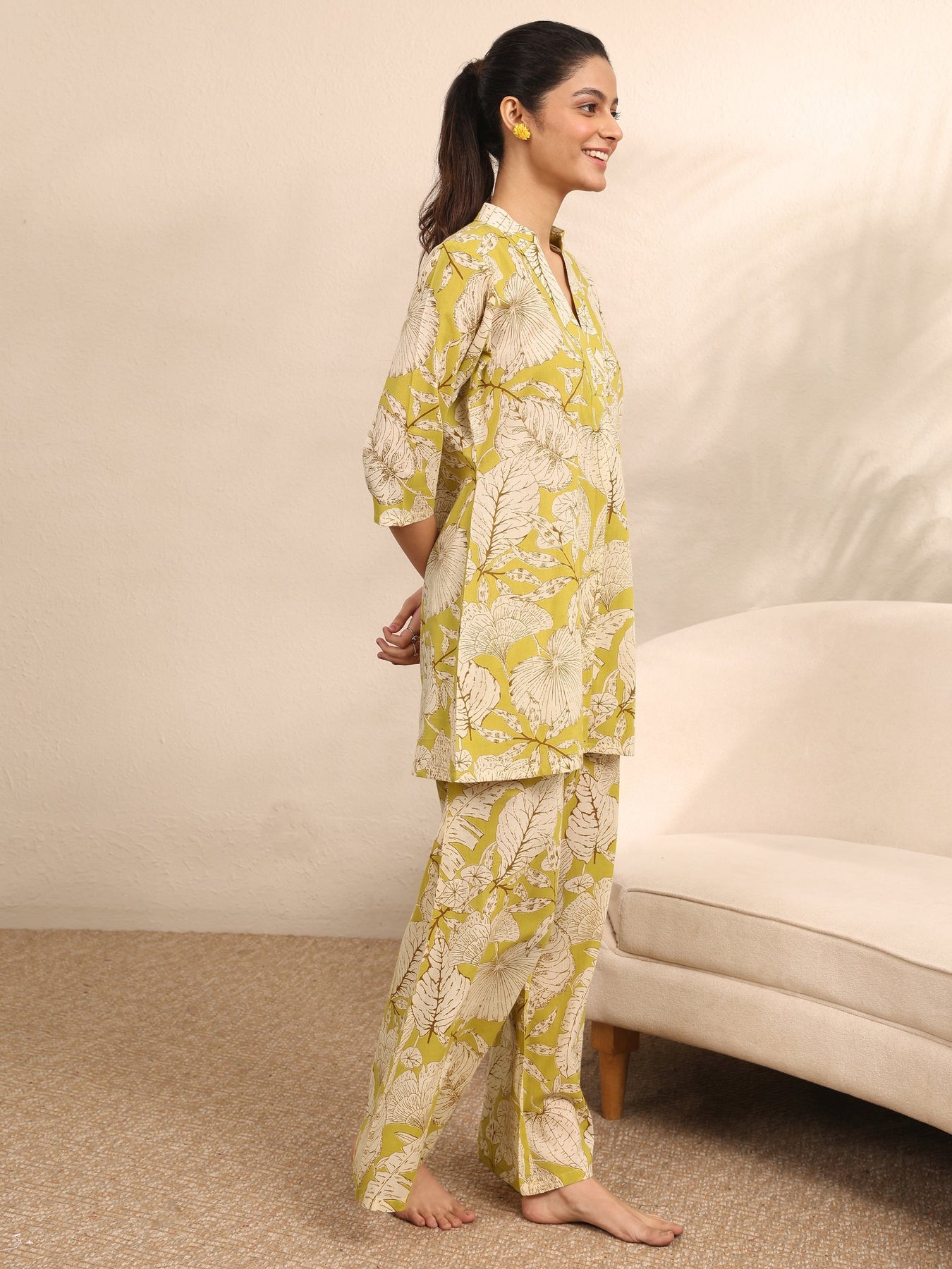 Our 2-piece Green printed Cotton nightsuit features a Straight-fit Shirt with a V-Neck neckline and Three-quarter sleeves. Complemented with matching Pyjamas with Partially Elasticated waistband and 2 pockets. Elevated with Top Print, this style is perfect for Night Wear.