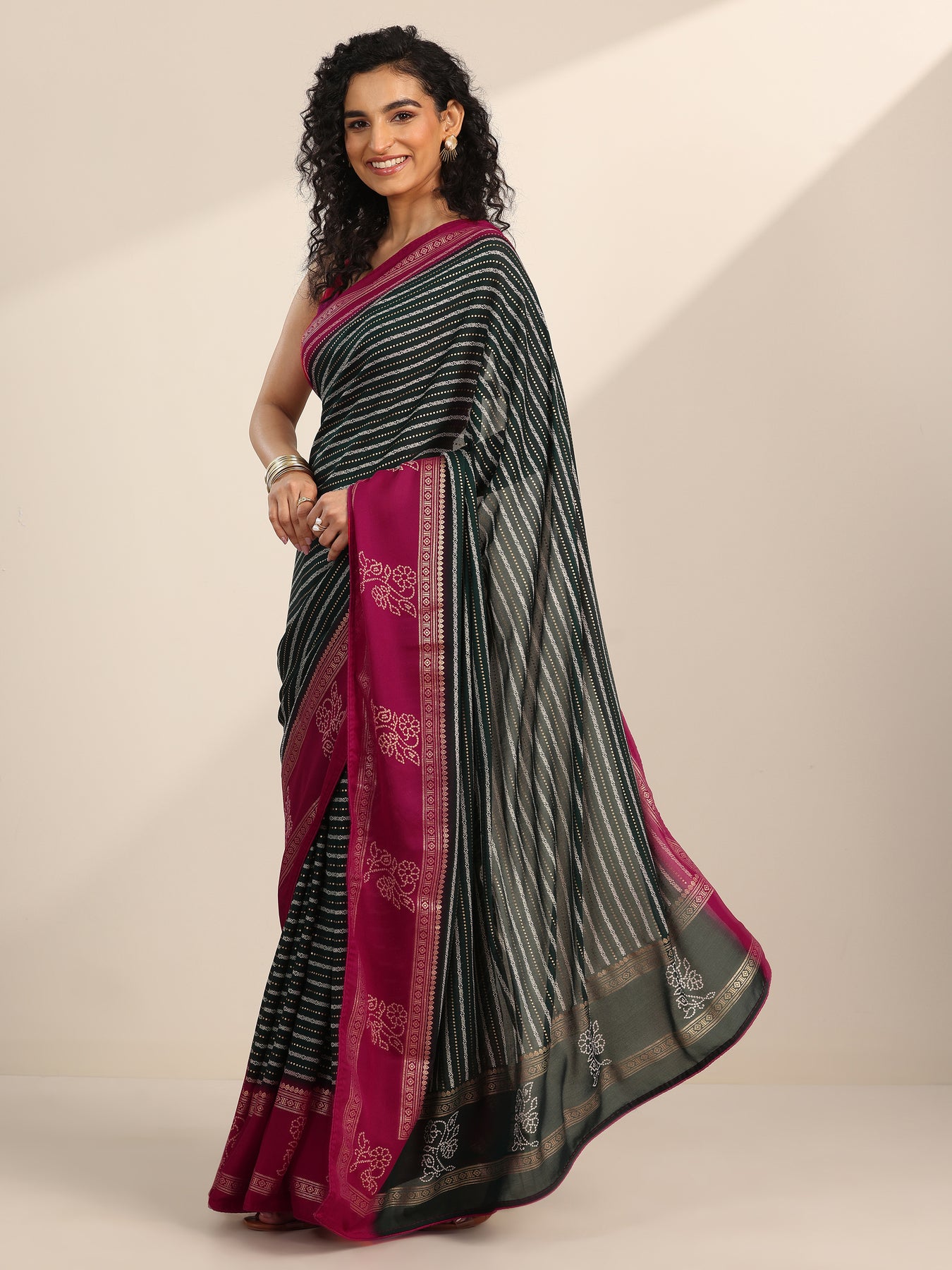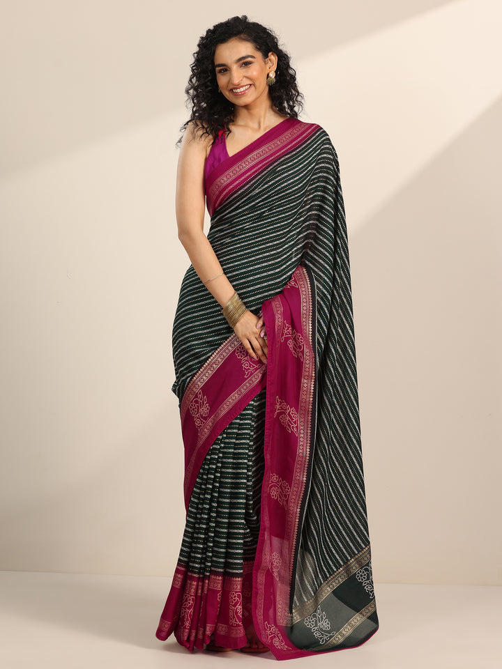Green Printed Georgette Saree With Unstitched Blouse Piece