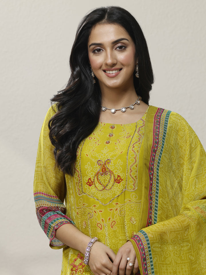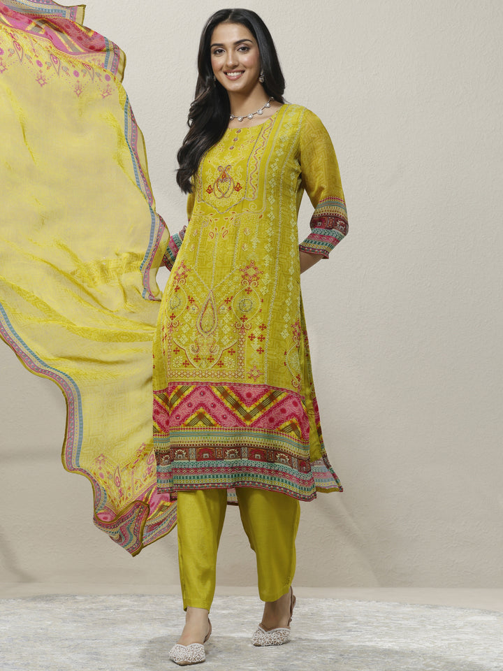Green Printed Organza Straight Suit Set With Dupatta