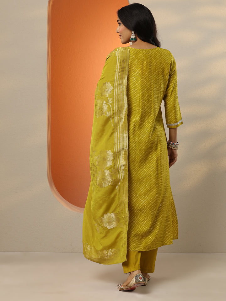 Green Printed Silk blend A-line Suit Set With Dupatta