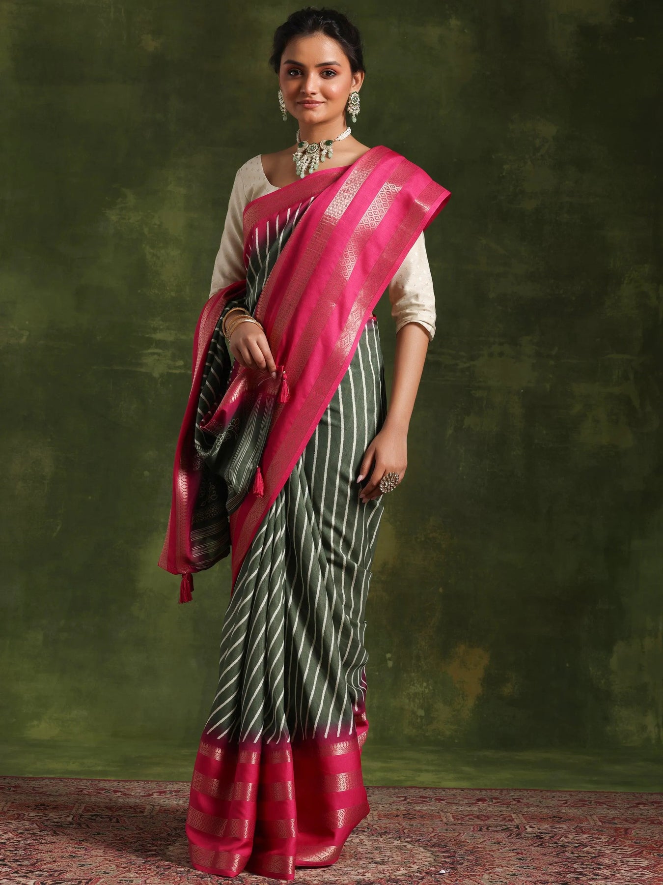 {"id":8087761354902,"title":"Green Printed Silk Blend Saree With Unstitched Blouse Piece","handle":"green-printed-silk-blend-saree-with-unstitched-blouse-piece-14972","description":"\u003cp\u003eOur green printed silk blend saree features a combination of striped and ethnic motifs prints. Highlighted with Zari border and charming tassels, this style is perfect for light festivities.\u003c\/p\u003e","published_at":"2024-05-17T16:27:36+05:30","created_at":"2024-05-01T16:15:52+05:30","vendor":"Libas","type":"All Products","tags":["14972","Daily Wear Sarees","Designer Sarees","EXCLA","FarewelSarees","Festive Collection","Green","Green Sarees","Independence Day Mela","Karva Chauth Dresses","KARVACHAUTH","KARWACHAUTH2024","KarwaChauthSale2025","New Launch","NEWARRIVALSAW24","NEWARRIVALSSS24","Printed Sarees","Raksha Bandhan Mela","SALE-P","SAR","Saree","Sarees","Silk Sarees","SS24","SS24 SAREES","Striped Sarees","Wedding Collection","Wedding Sarees","Zari Work Sarees"],"price":94900,"price_min":94900,"price_max":94900,"available":false,"price_varies":false,"compare_at_price":219900,"compare_at_price_min":219900,"compare_at_price_max":219900,"compare_at_price_varies":false,"variants":[{"id":43570753568918,"title":"Onesize","option1":"Onesize","option2":null,"option3":null,"sku":"14972","requires_shipping":true,"taxable":true,"featured_image":{"id":36073184362646,"product_id":8087761354902,"position":1,"created_at":"2024-05-14T13:01:31+05:30","updated_at":"2025-08-25T11:58:00+05:30","alt":"Green Printed Silk Blend Saree With Unstitched Blouse Piece - Libas","width":2160,"height":2880,"src":"\/\/www.libas.in\/cdn\/shop\/files\/1_262d9b46-027b-484c-99e8-d869e0a2b46a.jpg?v=1756103280","variant_ids":[43570753568918]},"available":false,"name":"Green Printed Silk Blend Saree With Unstitched Blouse Piece - Onesize","public_title":"Onesize","options":["Onesize"],"price":94900,"weight":0,"compare_at_price":219900,"inventory_management":"shopify","barcode":"8909076142046","featured_media":{"alt":"Green Printed Silk Blend Saree With Unstitched Blouse Piece - Libas","id":28574173954198,"position":1,"preview_image":{"aspect_ratio":0.75,"height":2880,"width":2160,"src":"\/\/www.libas.in\/cdn\/shop\/files\/1_262d9b46-027b-484c-99e8-d869e0a2b46a.jpg?v=1756103280"}},"requires_selling_plan":false,"selling_plan_allocations":[],"quantity_rule":{"min":1,"max":null,"increment":1}}],"images":["\/\/www.libas.in\/cdn\/shop\/files\/1_262d9b46-027b-484c-99e8-d869e0a2b46a.jpg?v=1756103280","\/\/www.libas.in\/cdn\/shop\/files\/2_cff8352d-64c6-45c3-8dea-9c5302225bb7.jpg?v=1756103280","\/\/www.libas.in\/cdn\/shop\/files\/3_23a2513a-aa48-49f1-b7ec-6f113e3430b9.jpg?v=1756103280","\/\/www.libas.in\/cdn\/shop\/files\/4_796e56ef-14ec-48f2-a0c6-ab49e843964f.jpg?v=1756103280","\/\/www.libas.in\/cdn\/shop\/files\/5_48b65457-2311-464c-9ec7-83638334342b.jpg?v=1756103280","\/\/www.libas.in\/cdn\/shop\/files\/6_5f3efb8d-2c4e-4d88-9c28-9e3f9e60218d.jpg?v=1756103280","\/\/www.libas.in\/cdn\/shop\/files\/7_f90474e1-1513-425a-b2f4-610e72c9f7cf.jpg?v=1756103280","\/\/www.libas.in\/cdn\/shop\/files\/8_90427e19-b472-42e6-8c0e-cca6b3d0cf0a.jpg?v=1756103280","\/\/www.libas.in\/cdn\/shop\/files\/14972_58835435-f527-48ec-9f9d-947cdae1d0f5.jpg?v=1756103281"],"featured_image":"\/\/www.libas.in\/cdn\/shop\/files\/1_262d9b46-027b-484c-99e8-d869e0a2b46a.jpg?v=1756103280","options":["Size"],"media":[{"alt":"Green Printed Silk Blend Saree With Unstitched Blouse Piece - Libas","id":28574173954198,"position":1,"preview_image":{"aspect_ratio":0.75,"height":2880,"width":2160,"src":"\/\/www.libas.in\/cdn\/shop\/files\/1_262d9b46-027b-484c-99e8-d869e0a2b46a.jpg?v=1756103280"},"aspect_ratio":0.75,"height":2880,"media_type":"image","src":"\/\/www.libas.in\/cdn\/shop\/files\/1_262d9b46-027b-484c-99e8-d869e0a2b46a.jpg?v=1756103280","width":2160},{"alt":"Green Printed Silk Blend Saree With Unstitched Blouse Piece - Libas","id":28574173986966,"position":2,"preview_image":{"aspect_ratio":0.75,"height":2880,"width":2160,"src":"\/\/www.libas.in\/cdn\/shop\/files\/2_cff8352d-64c6-45c3-8dea-9c5302225bb7.jpg?v=1756103280"},"aspect_ratio":0.75,"height":2880,"media_type":"image","src":"\/\/www.libas.in\/cdn\/shop\/files\/2_cff8352d-64c6-45c3-8dea-9c5302225bb7.jpg?v=1756103280","width":2160},{"alt":"Green Printed Silk Blend Saree With Unstitched Blouse Piece - Libas","id":28574174019734,"position":3,"preview_image":{"aspect_ratio":0.75,"height":2880,"width":2160,"src":"\/\/www.libas.in\/cdn\/shop\/files\/3_23a2513a-aa48-49f1-b7ec-6f113e3430b9.jpg?v=1756103280"},"aspect_ratio":0.75,"height":2880,"media_type":"image","src":"\/\/www.libas.in\/cdn\/shop\/files\/3_23a2513a-aa48-49f1-b7ec-6f113e3430b9.jpg?v=1756103280","width":2160},{"alt":"Green Printed Silk Blend Saree With Unstitched Blouse Piece - Libas","id":28574173757590,"position":4,"preview_image":{"aspect_ratio":0.75,"height":2880,"width":2160,"src":"\/\/www.libas.in\/cdn\/shop\/files\/4_796e56ef-14ec-48f2-a0c6-ab49e843964f.jpg?v=1756103280"},"aspect_ratio":0.75,"height":2880,"media_type":"image","src":"\/\/www.libas.in\/cdn\/shop\/files\/4_796e56ef-14ec-48f2-a0c6-ab49e843964f.jpg?v=1756103280","width":2160},{"alt":"Green Printed Silk Blend Saree With Unstitched Blouse Piece - Libas","id":28574173790358,"position":5,"preview_image":{"aspect_ratio":0.75,"height":2880,"width":2160,"src":"\/\/www.libas.in\/cdn\/shop\/files\/5_48b65457-2311-464c-9ec7-83638334342b.jpg?v=1756103280"},"aspect_ratio":0.75,"height":2880,"media_type":"image","src":"\/\/www.libas.in\/cdn\/shop\/files\/5_48b65457-2311-464c-9ec7-83638334342b.jpg?v=1756103280","width":2160},{"alt":"Green Printed Silk Blend Saree With Unstitched Blouse Piece - Libas","id":28574173823126,"position":6,"preview_image":{"aspect_ratio":0.75,"height":2880,"width":2160,"src":"\/\/www.libas.in\/cdn\/shop\/files\/6_5f3efb8d-2c4e-4d88-9c28-9e3f9e60218d.jpg?v=1756103280"},"aspect_ratio":0.75,"height":2880,"media_type":"image","src":"\/\/www.libas.in\/cdn\/shop\/files\/6_5f3efb8d-2