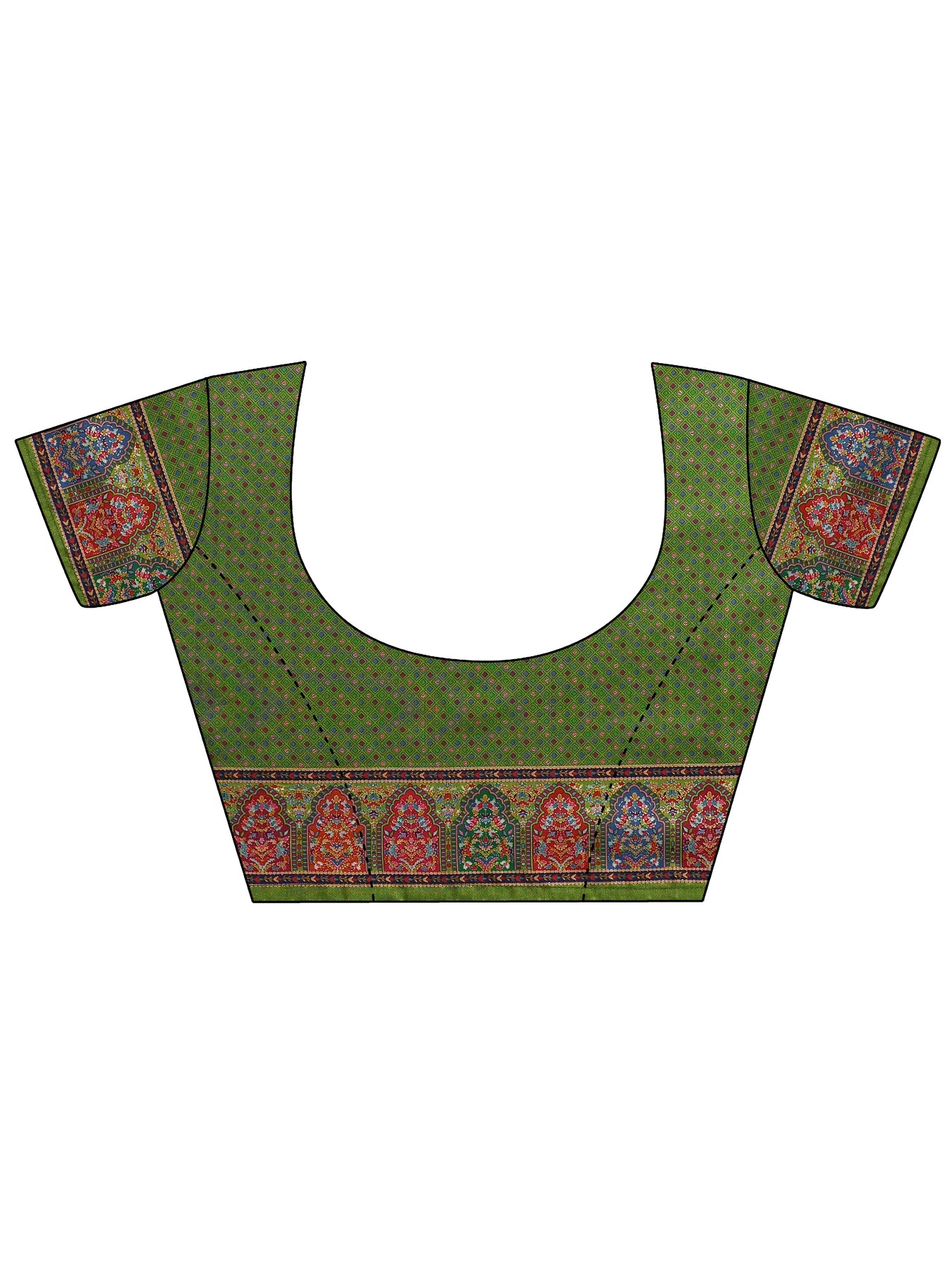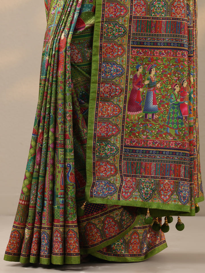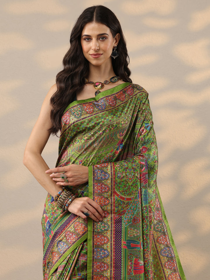 Green Printed Silk Blend Saree With Unstitched Blouse Piece