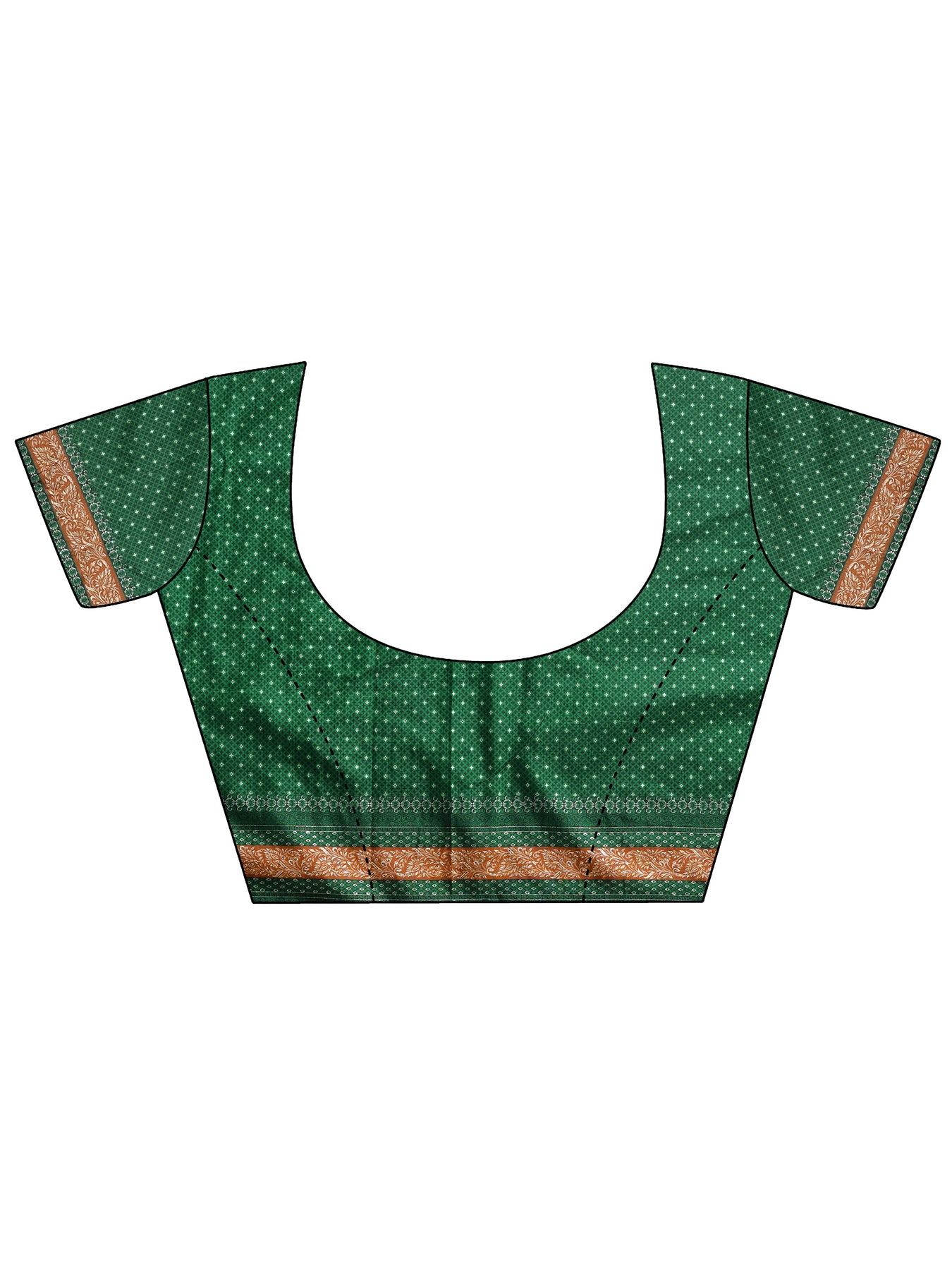 Green Printed Silk Blend Saree With Unstitched Blouse Piece