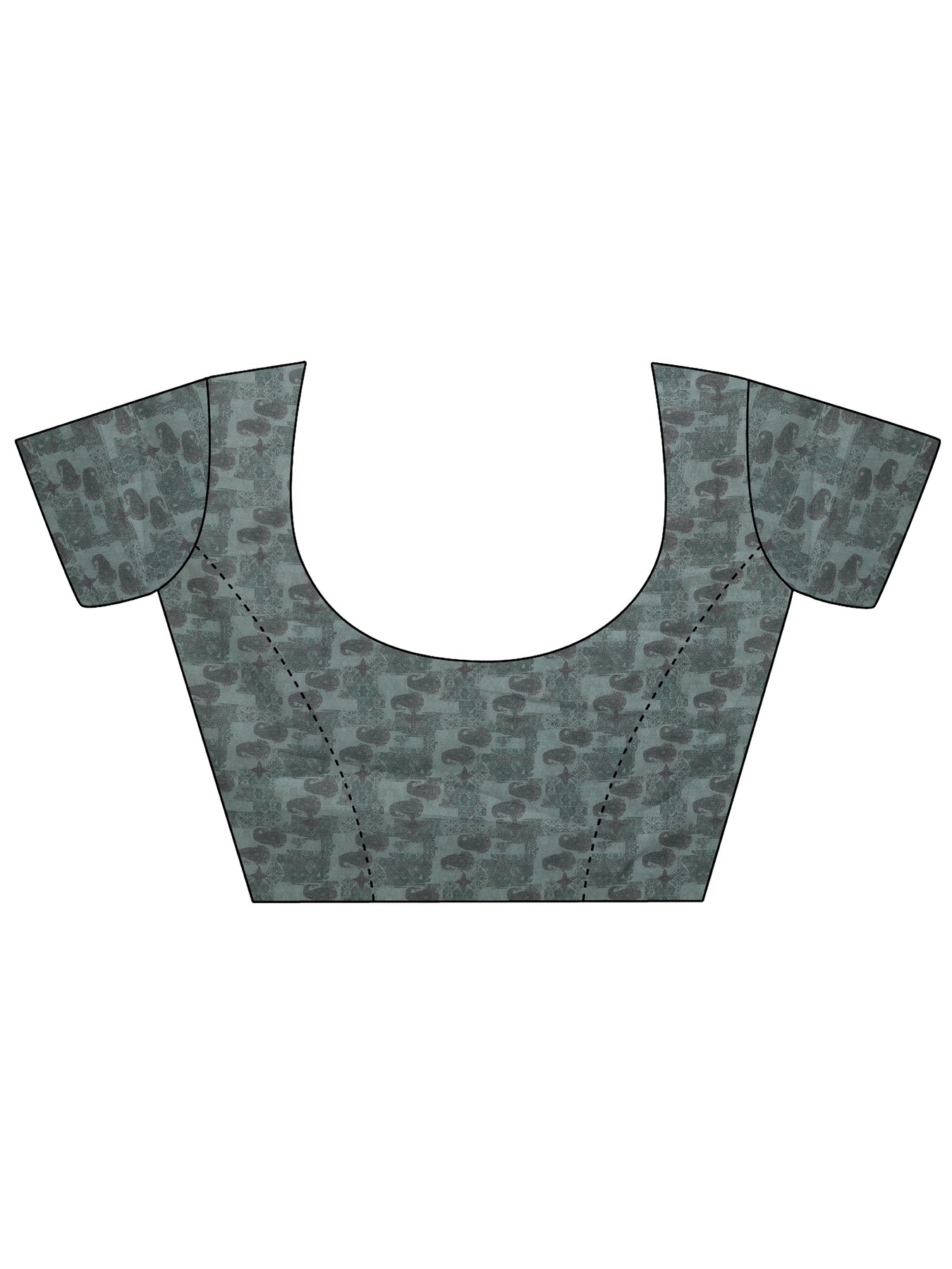 Green Printed Silk Blend Saree With Unstitched Blouse Piece