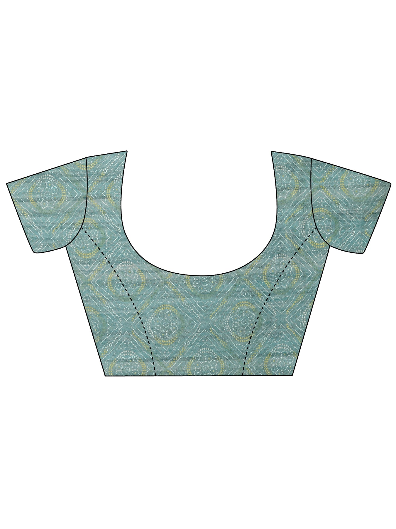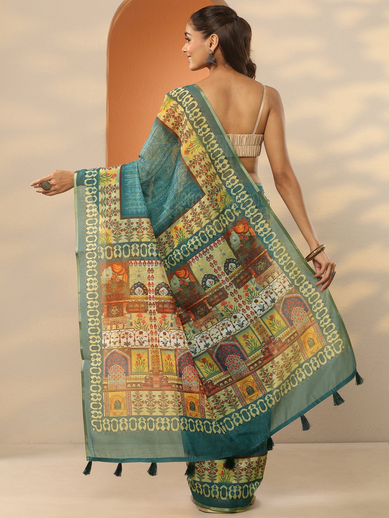 Green Printed Silk Blend Saree With Unstitched Blouse Piece