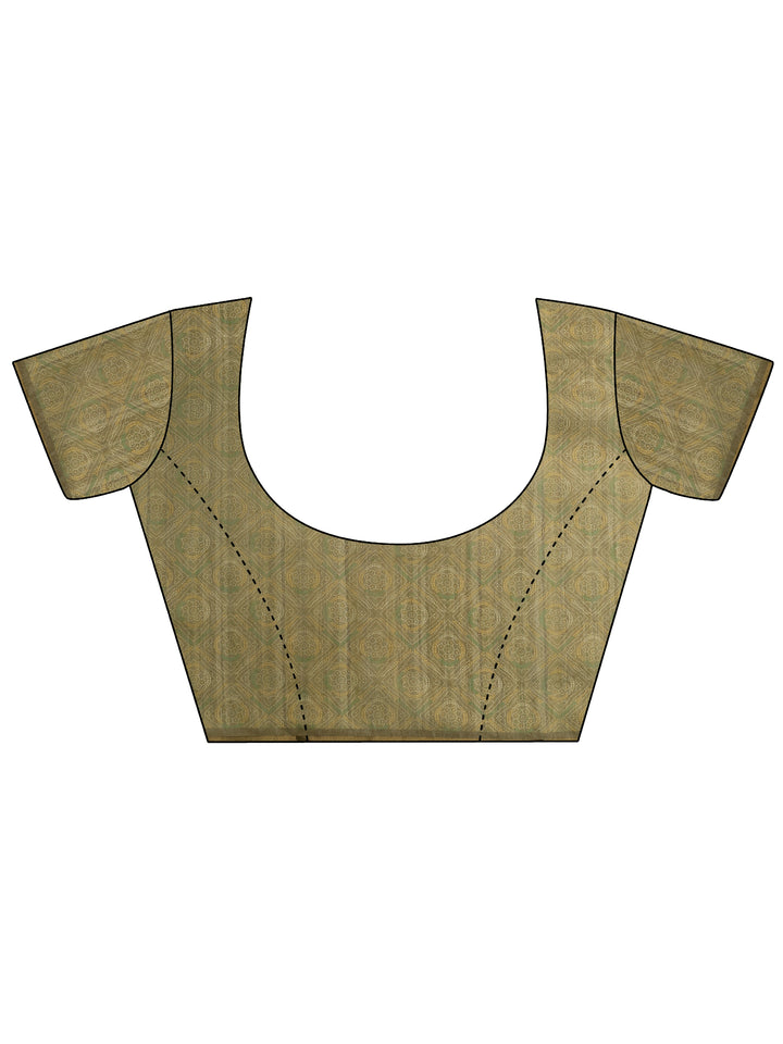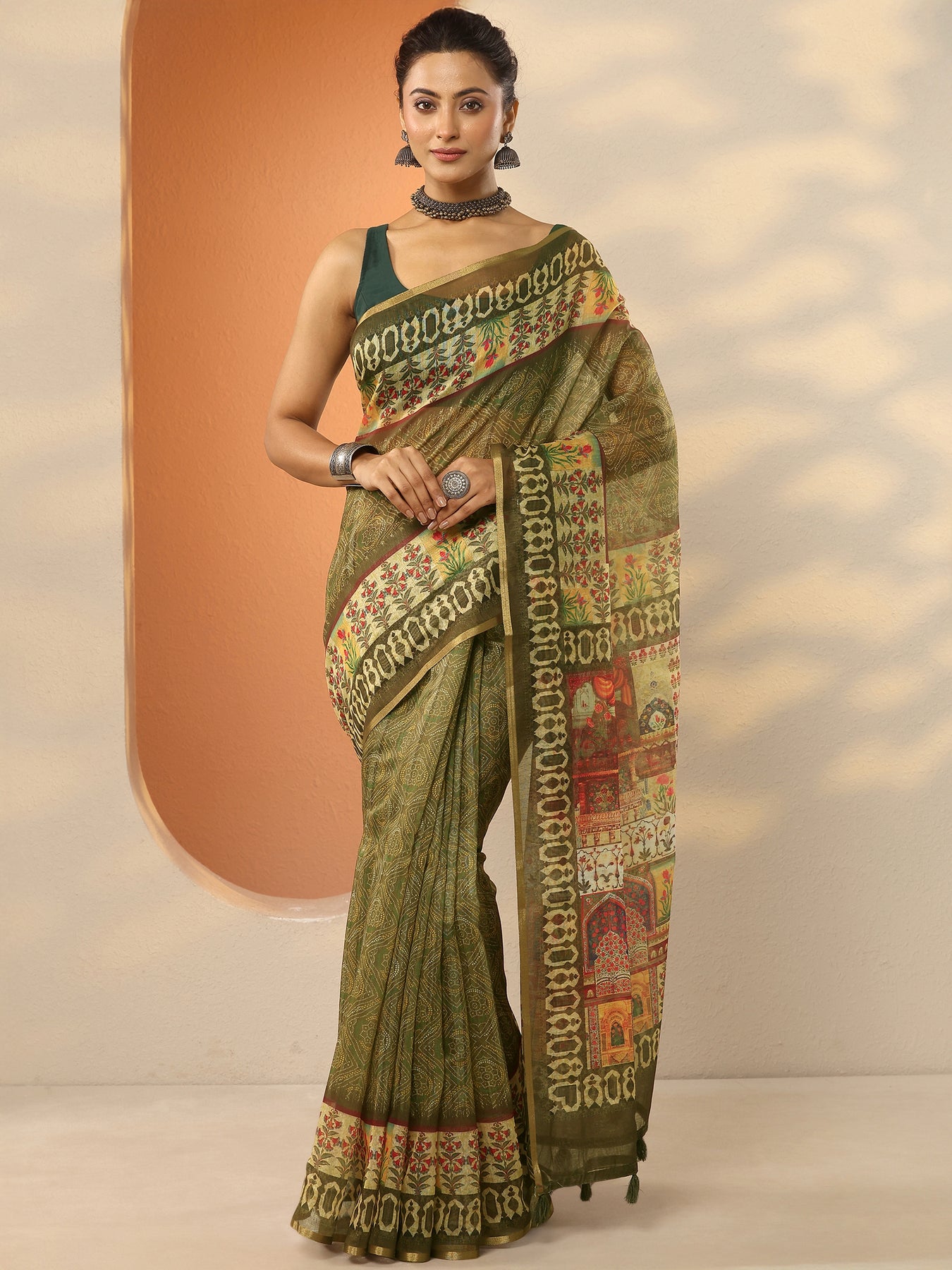 Green Printed Silk Blend Saree With Unstitched Blouse Piece
