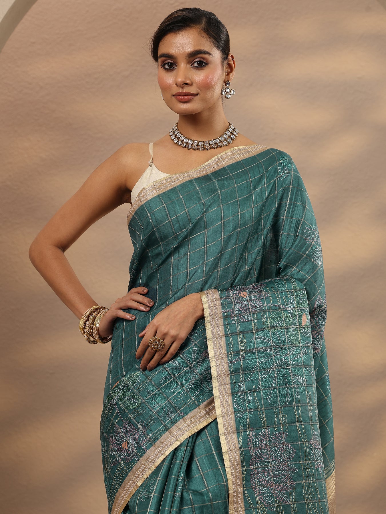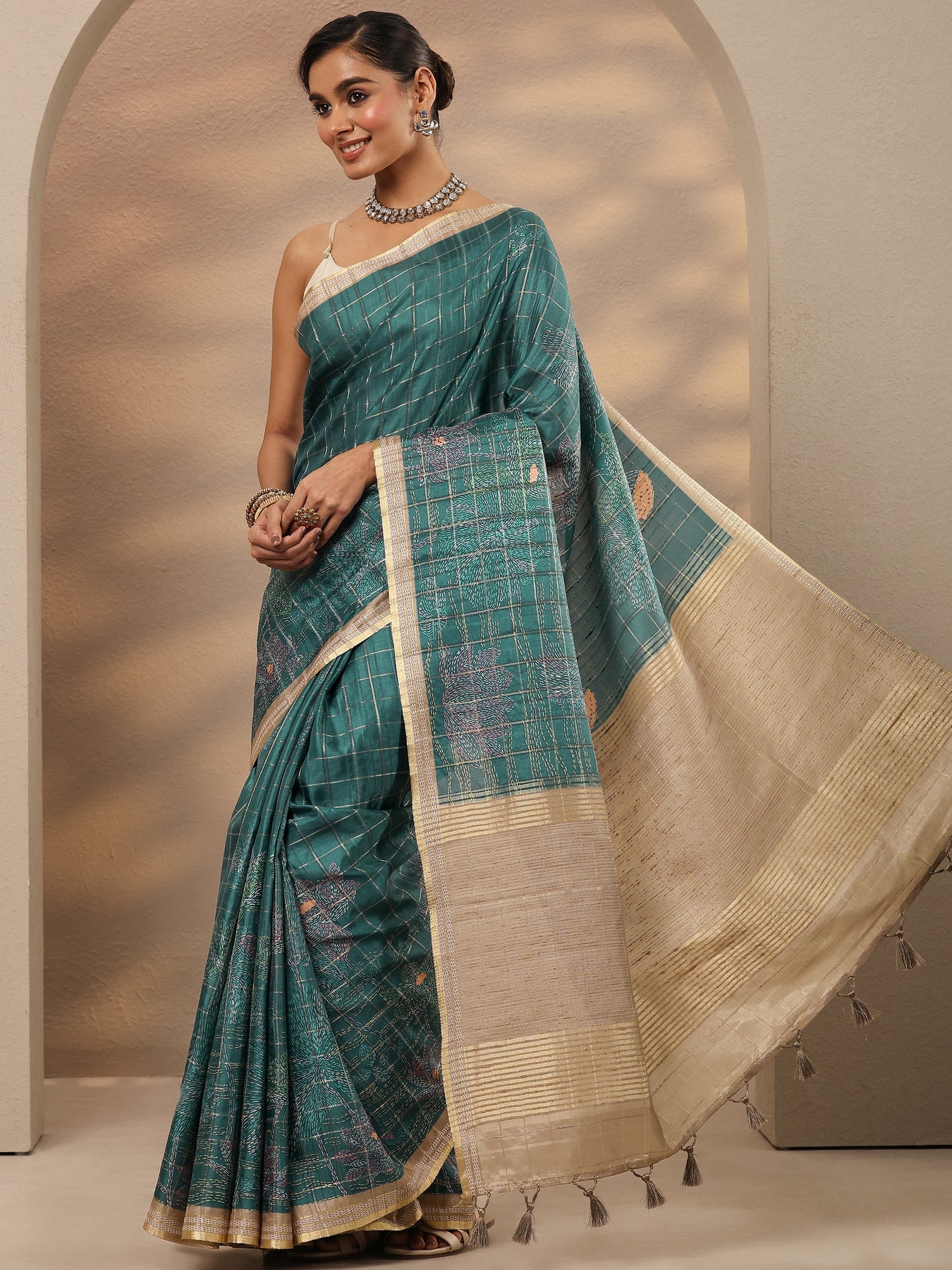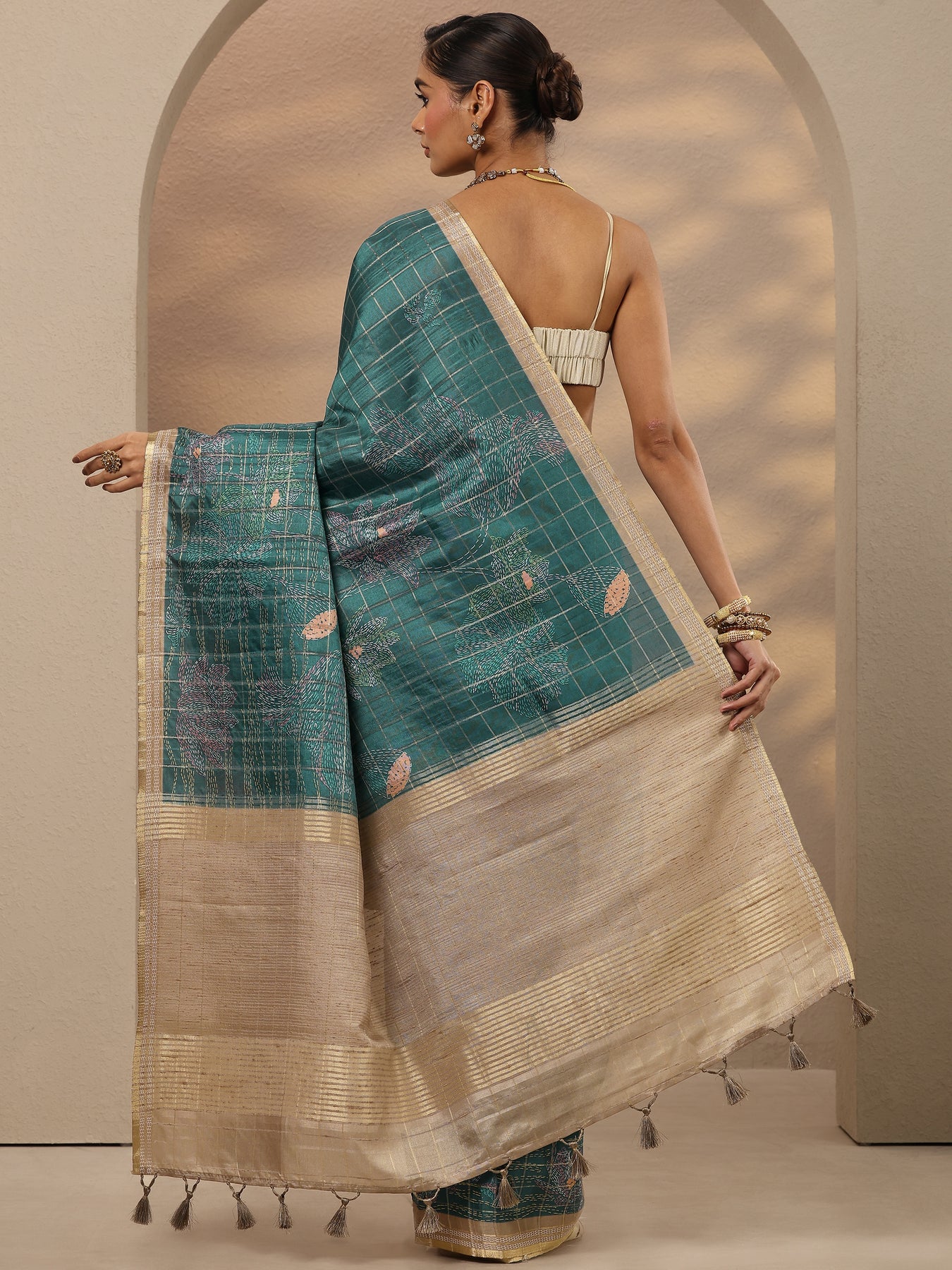 Our Green Printed Silk Blend Saree Features Captivating Floral. Complemented With An Unstitched Blouse Piece. This Charming Saree Is Perfect For Festive Occasions.