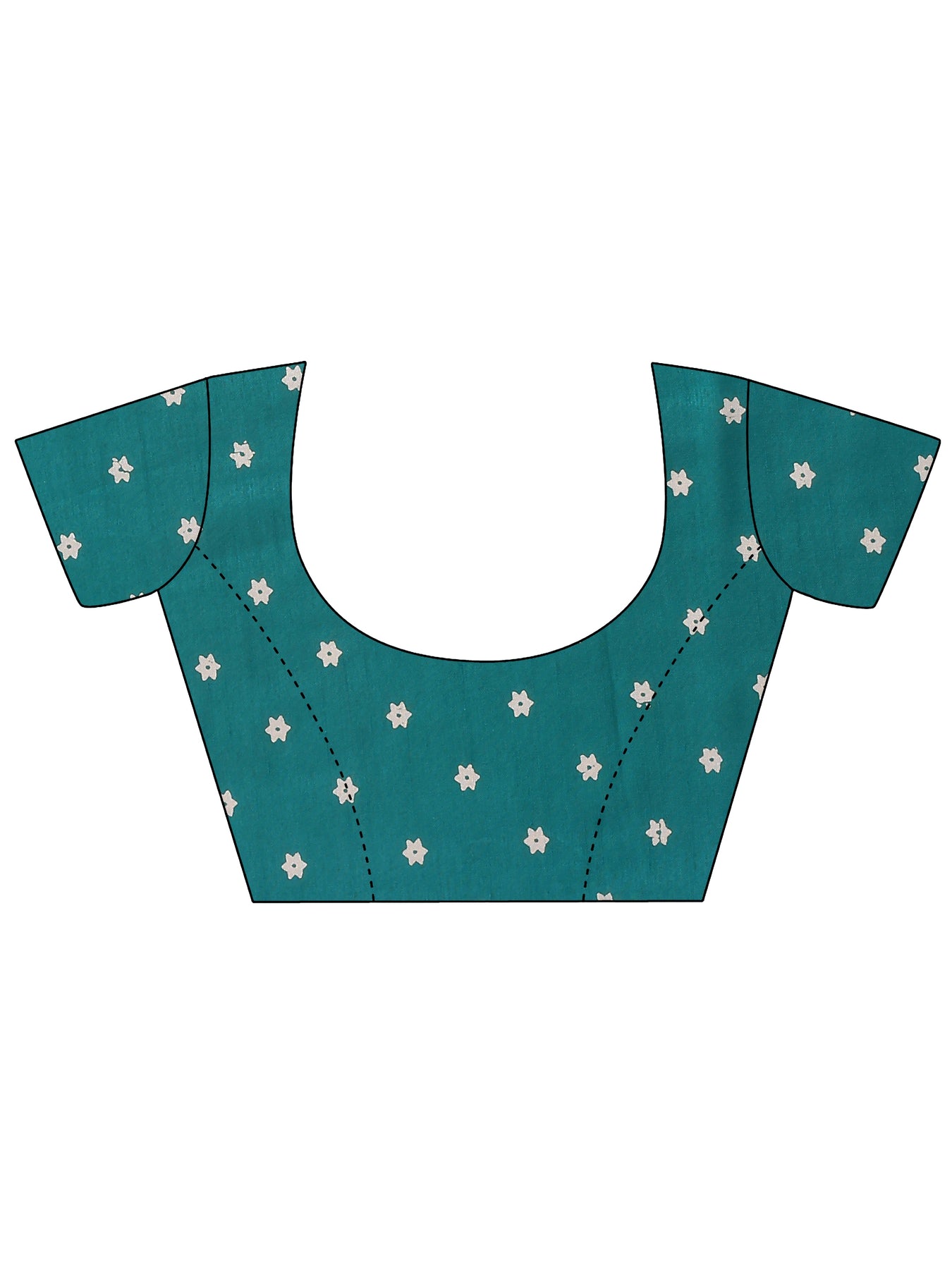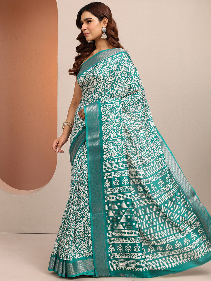 Green Printed Silk Blend Saree With Unstitched Blouse Piece