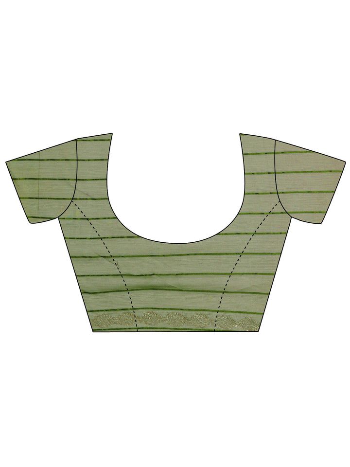 Green Striped Embellished Silk Blend Saree With Unstitched Blouse Piece