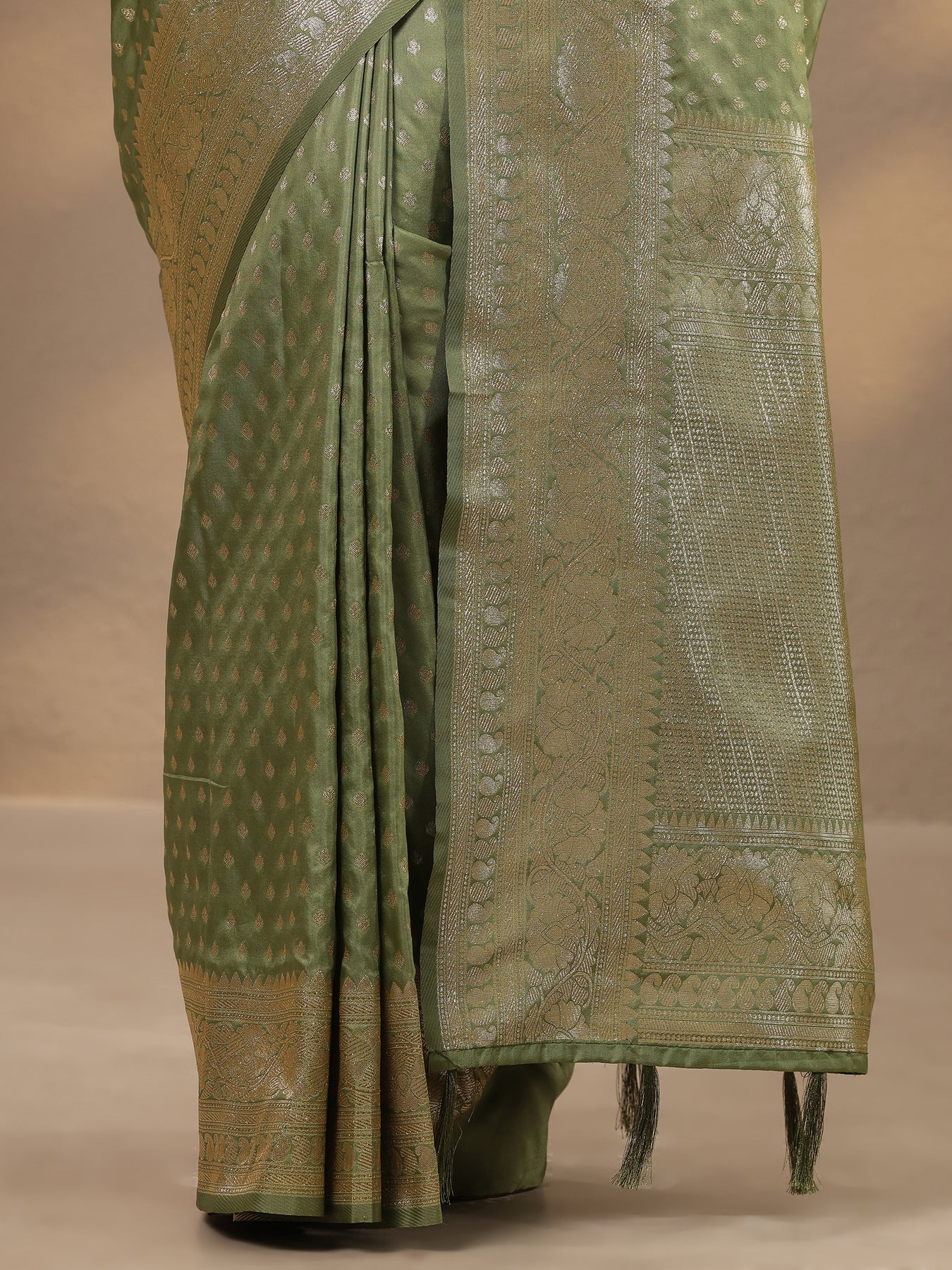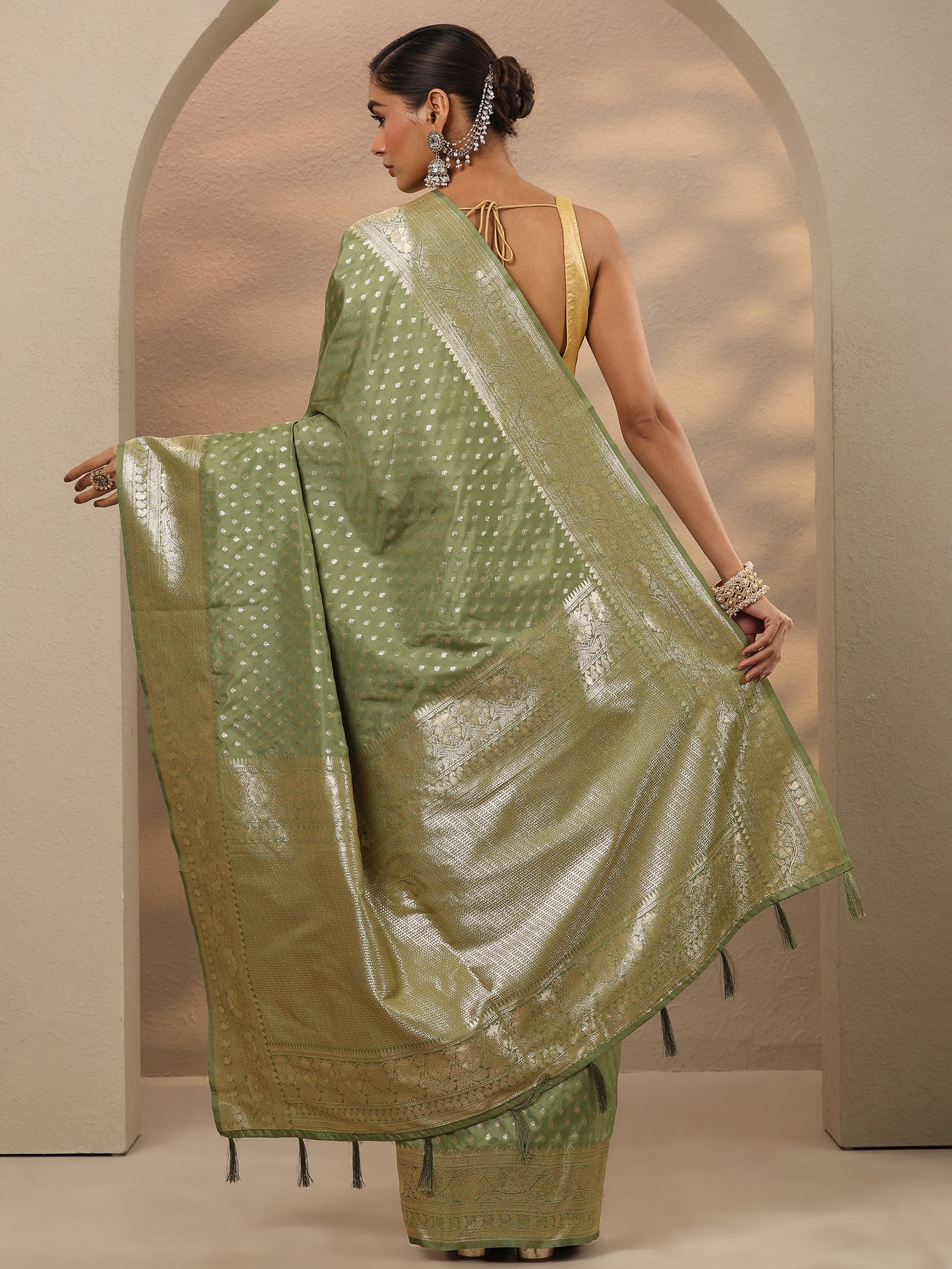 Our Green Woven Design Silk Blend Saree Features Captivating Ethnic Motif. Complemented With An Unstitched Blouse Piece. This Charming Saree Is Perfect For Festive Occasions.