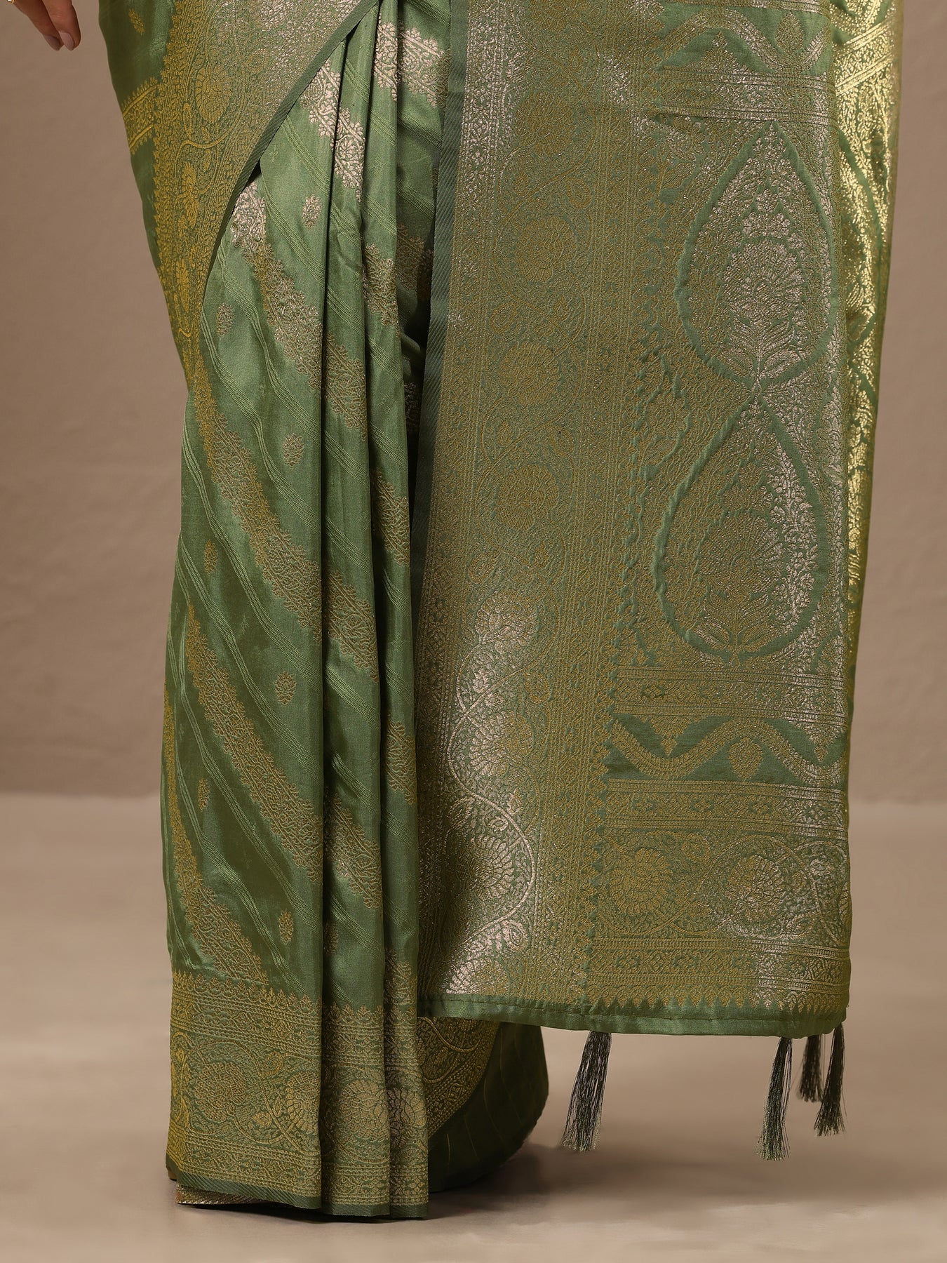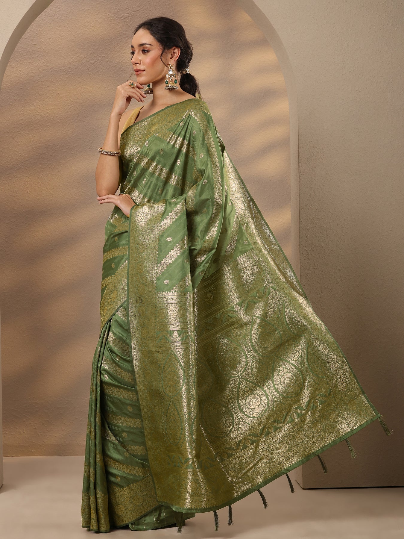 Our Green Woven Design Silk Blend Saree Features Captivating Ethnic Motif. Complemented With An Unstitched Blouse Piece. This Charming Saree Is Perfect For Festive Occasions.