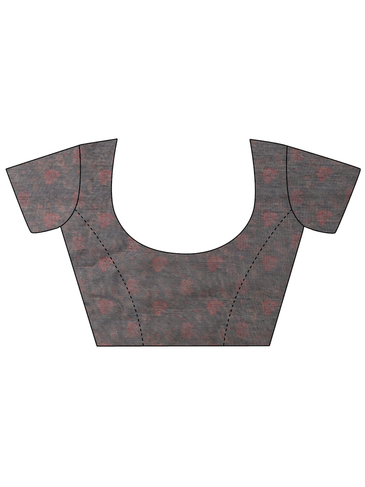 Grey Printed Silk Blend Saree With Unstitched Blouse Piece