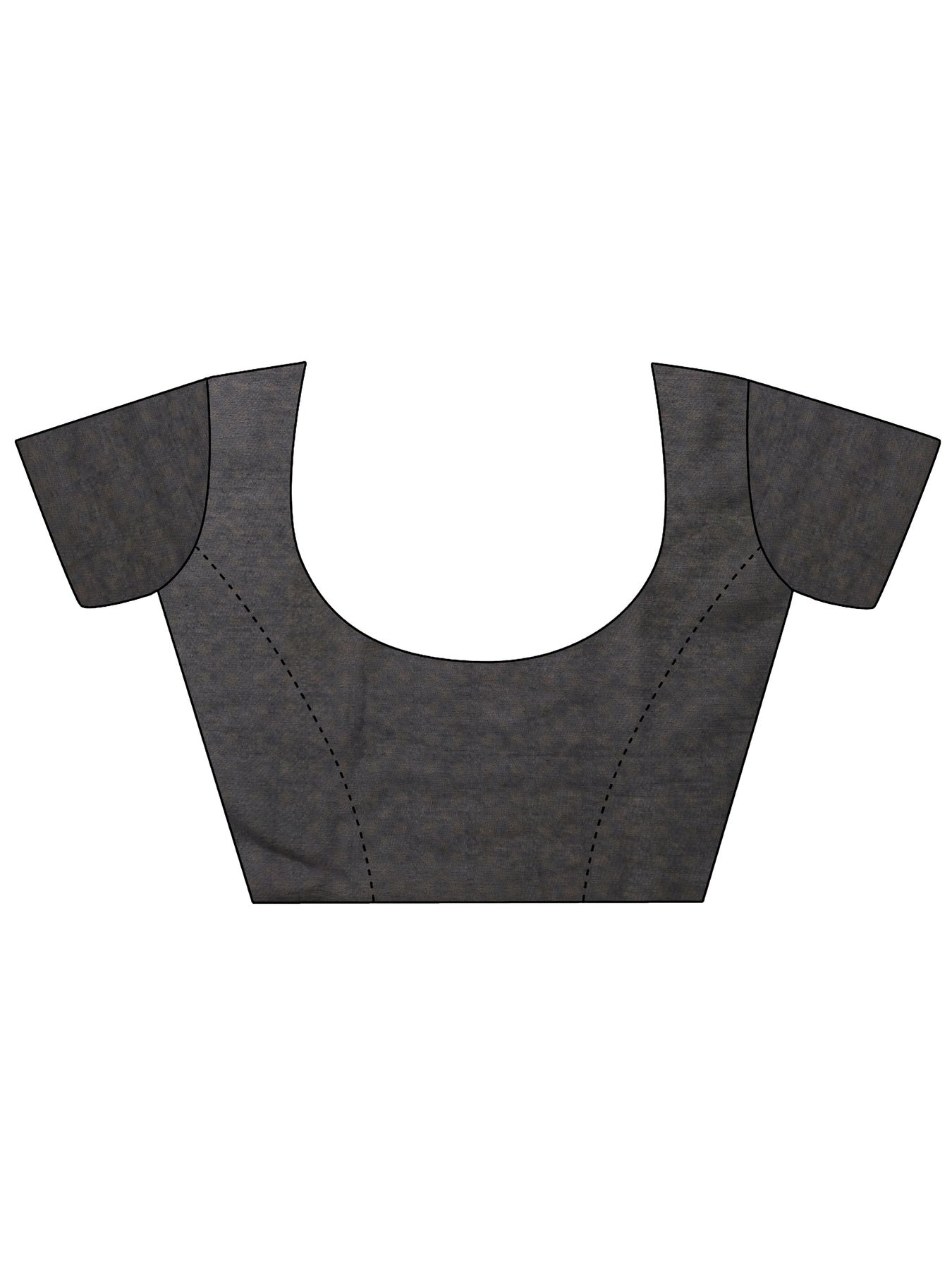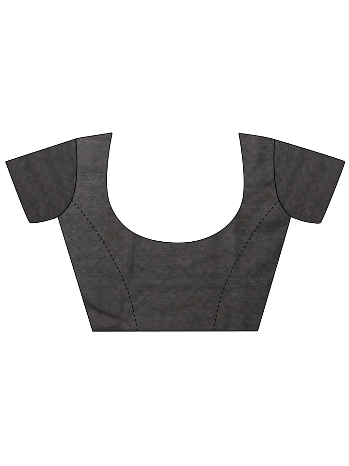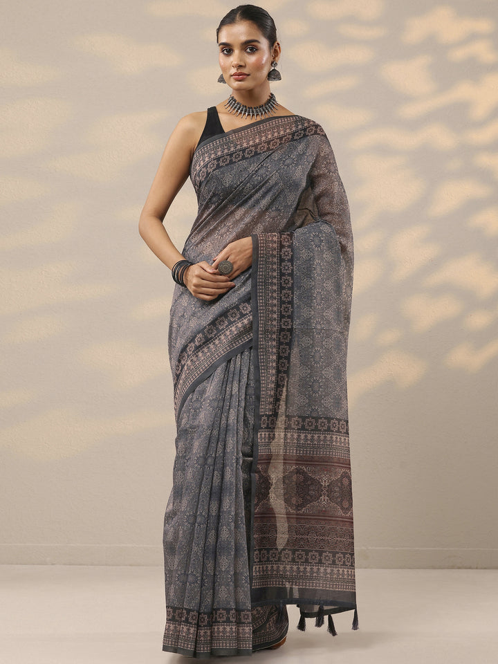 Grey Printed Silk Blend Saree With Unstitched Blouse Piece