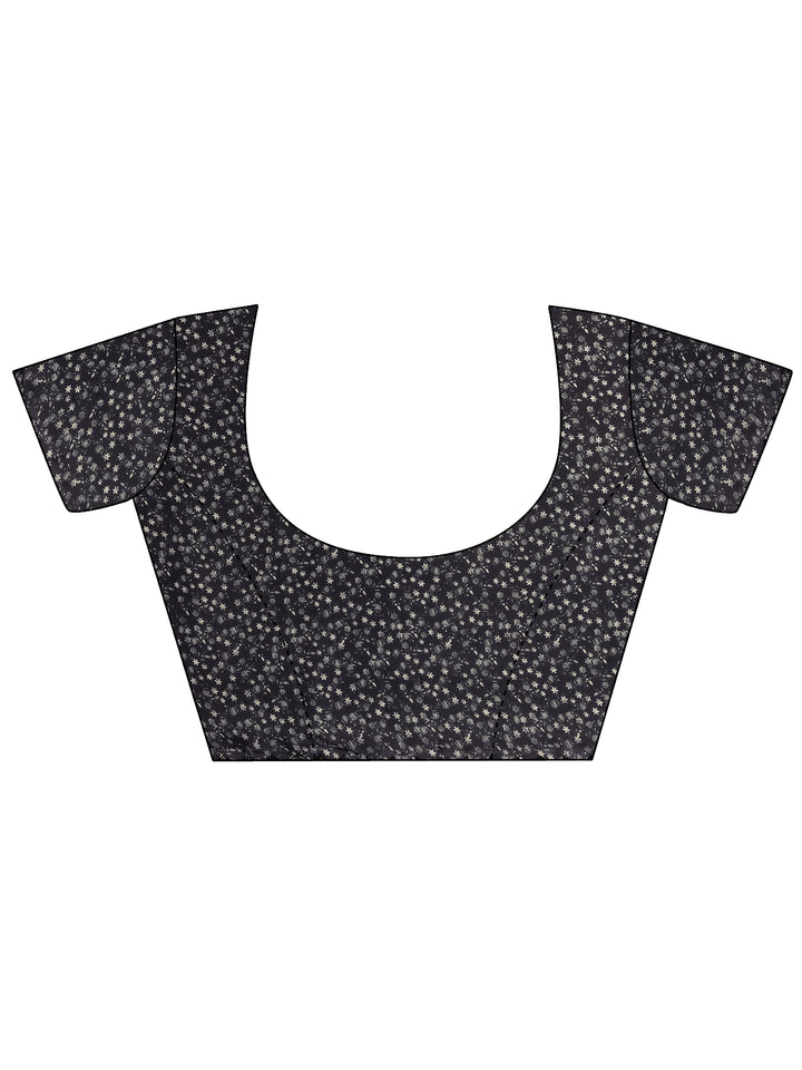 Grey Printed Silk Blend Saree With Unstitched Blouse Piece