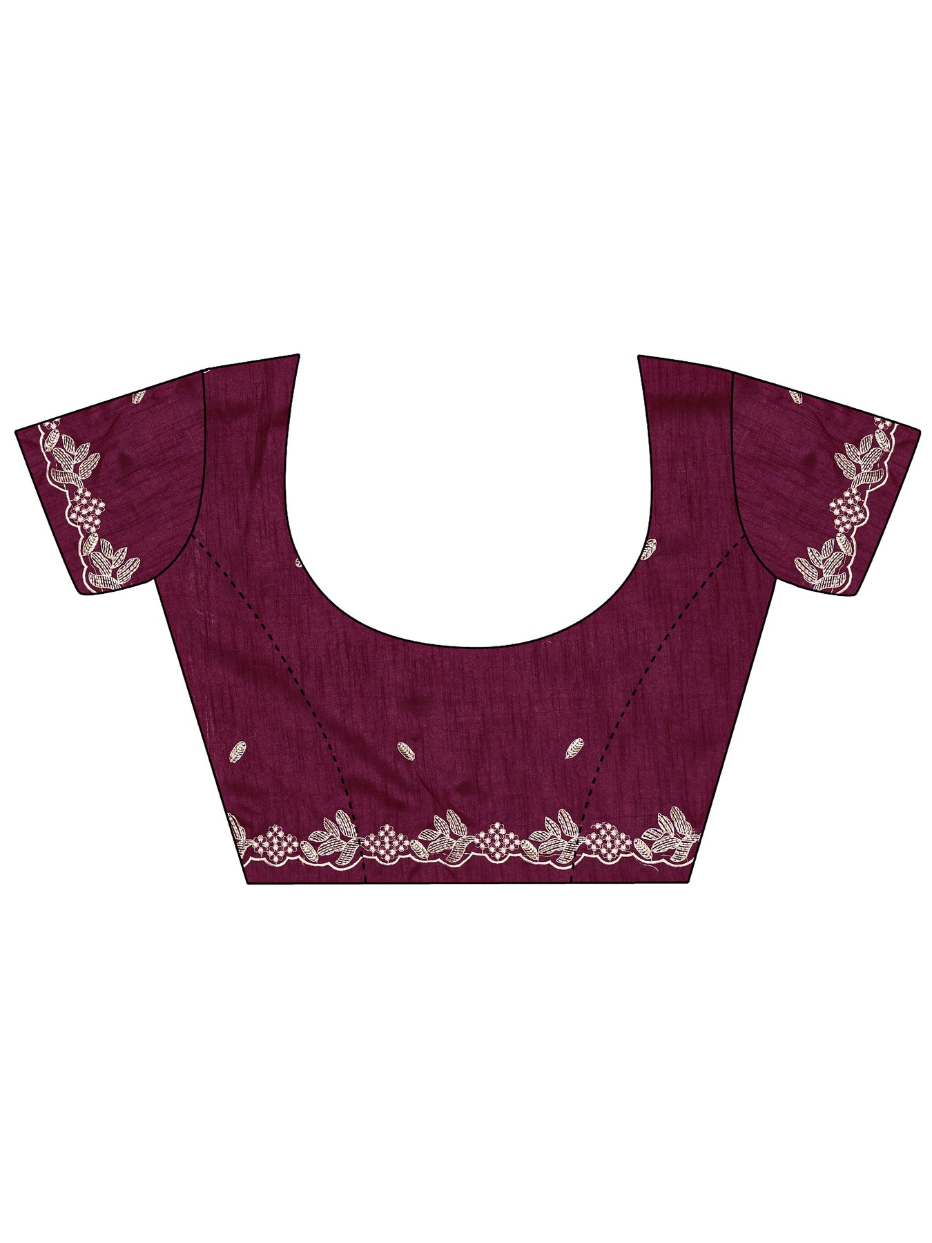 Our purple silk-blend saree features a soft, lustrous drape adorned with delicate pink and silver floral embroidery and scattered sequin detailing. Complemented with unstitched blouse, this graceful saree is perfect for festive occasions and traditional celebrations.