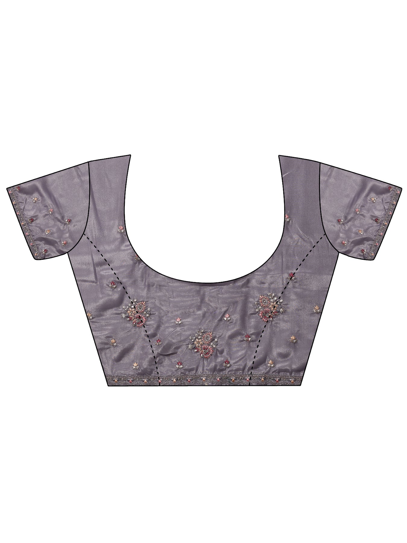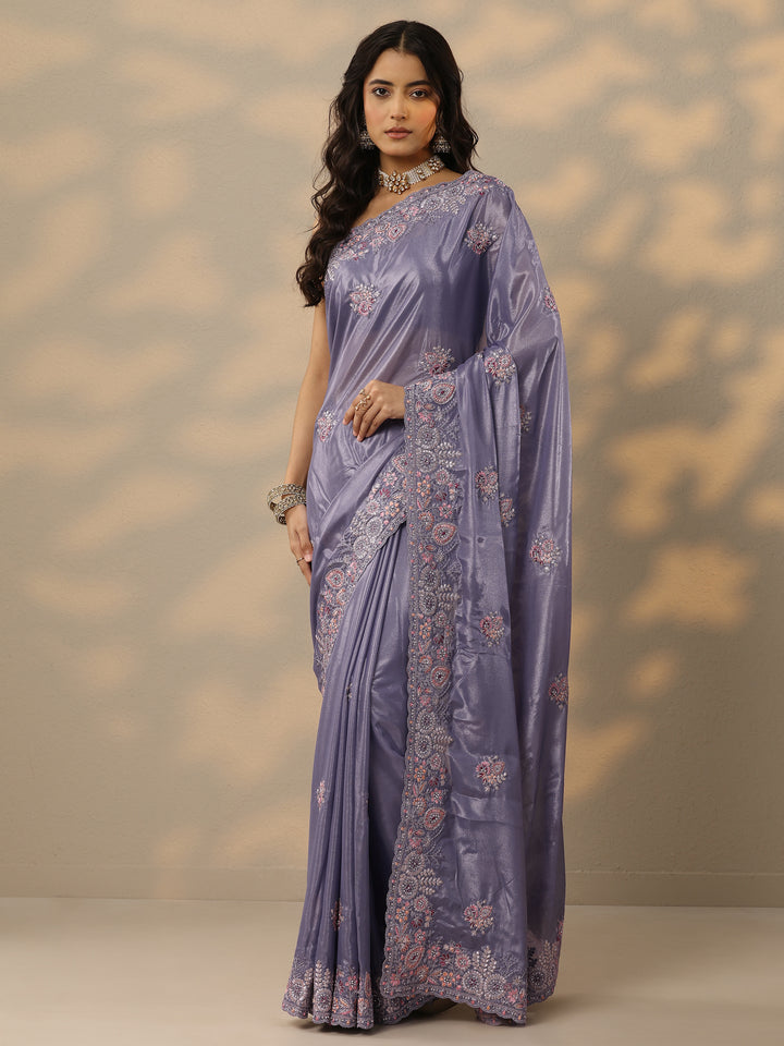Lavender Embroidered Crepe Saree With Unstitched Blouse Piece