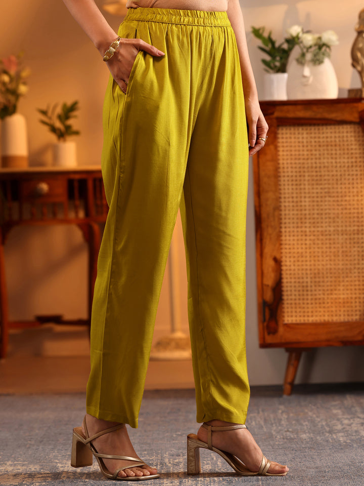Our 3-piece Yellow Muslin Anarkali Kurta Set features a V-Neckline, Regular Sleeves, and statement yoke. Complemented with Straight Pants with a Partially Elasticated waistband and 2 pockets, and a Floral dupatta. Adorned with Floral Printed accents, this style is perfect for Festive wear.