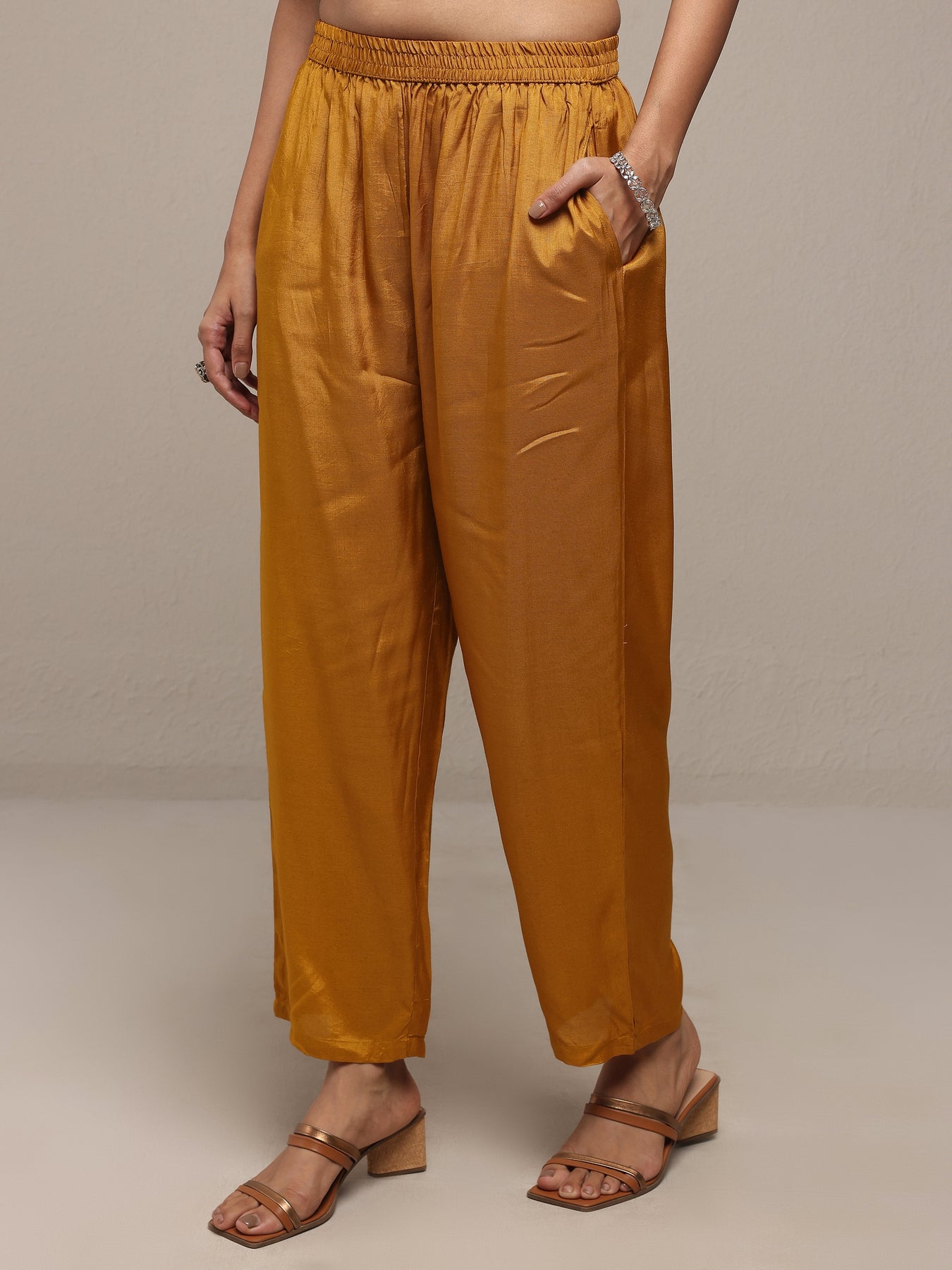 Libas Art Mustard Printed Silk Blend Straight Suit Set With Dupatta