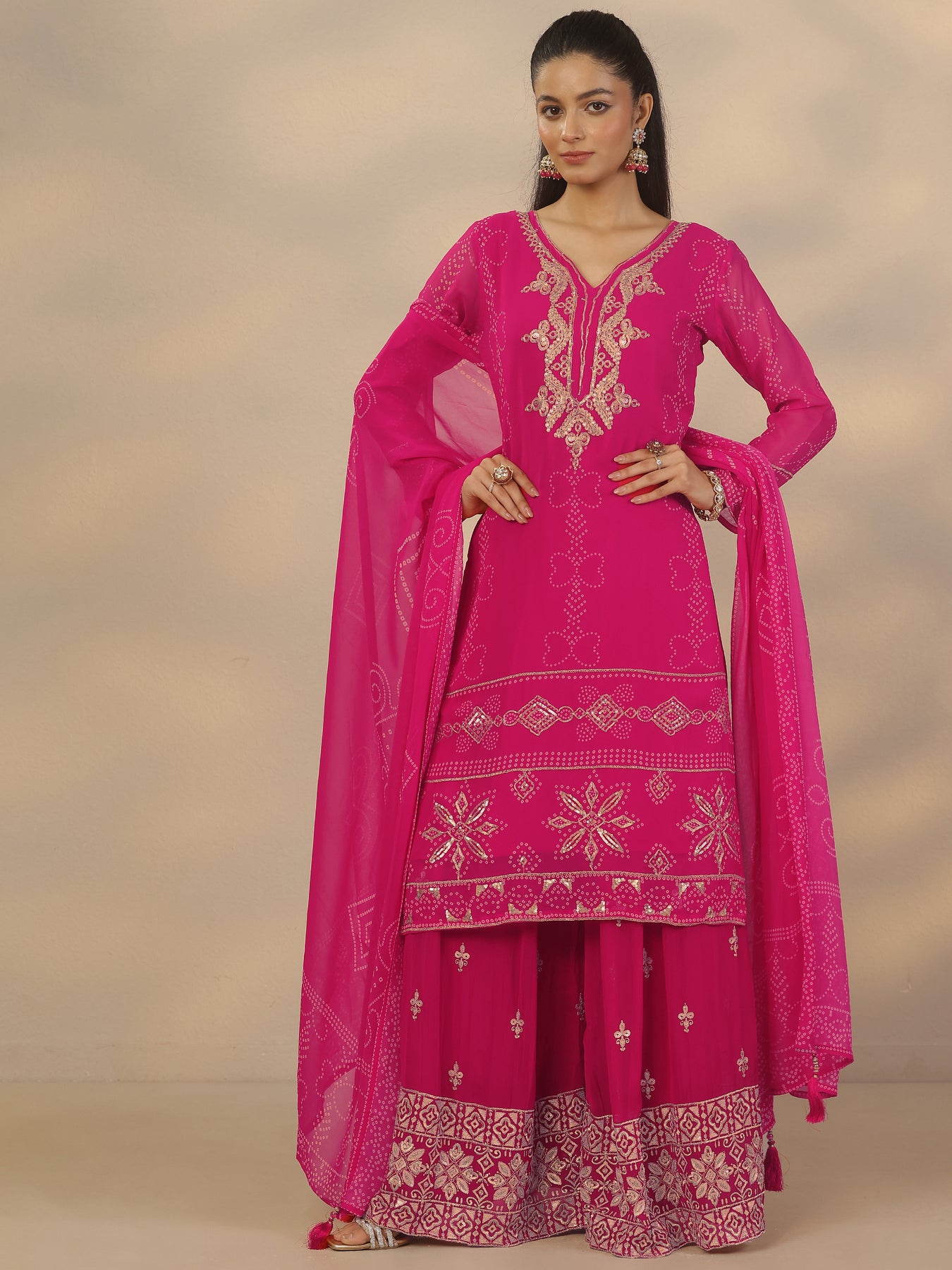 Libas Art Pink Printed Georgette Straight Suit Set With Dupatta