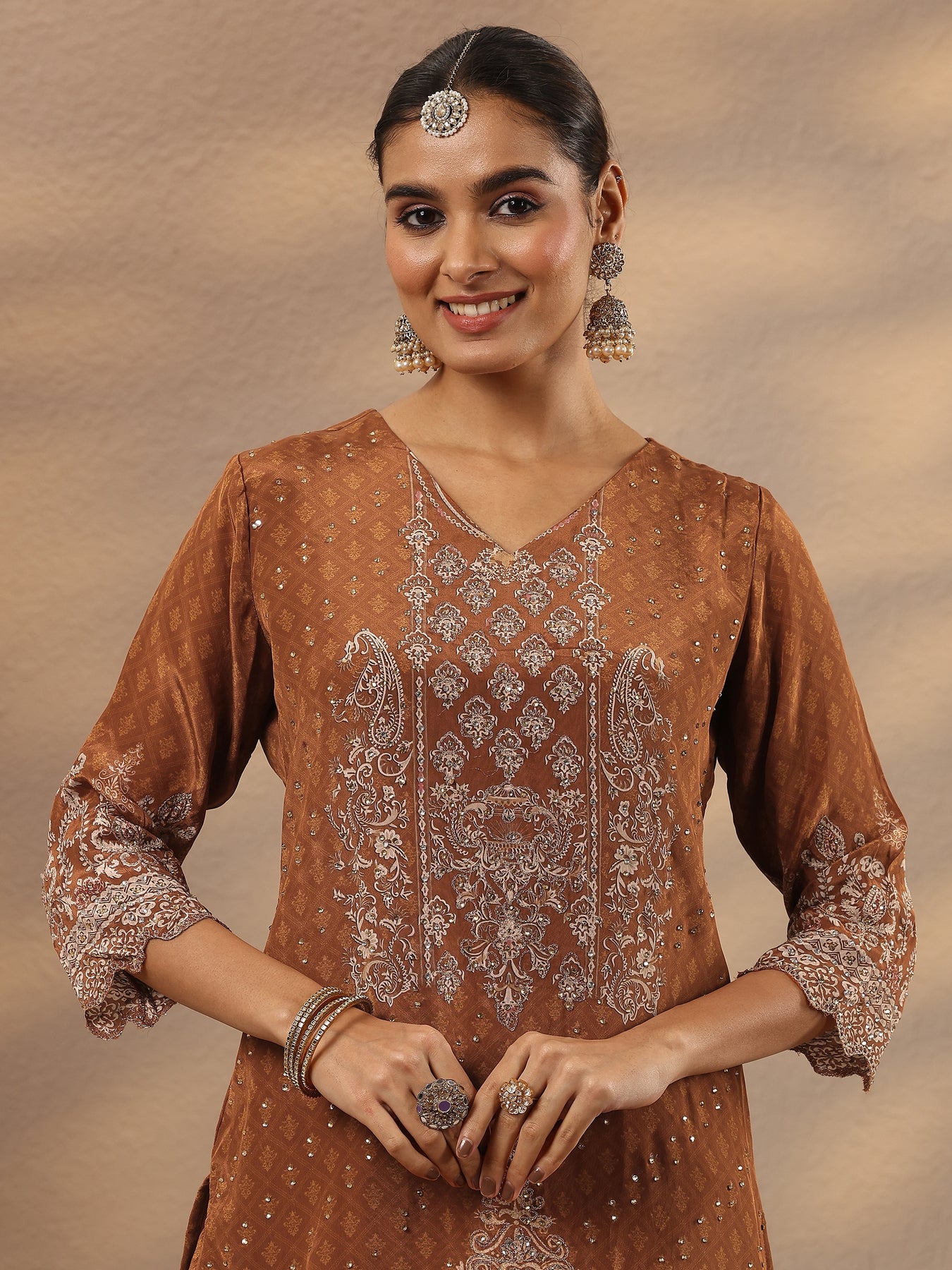 Libas Art Rust Embellished Crepe Suit Set With Dupatta